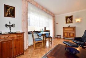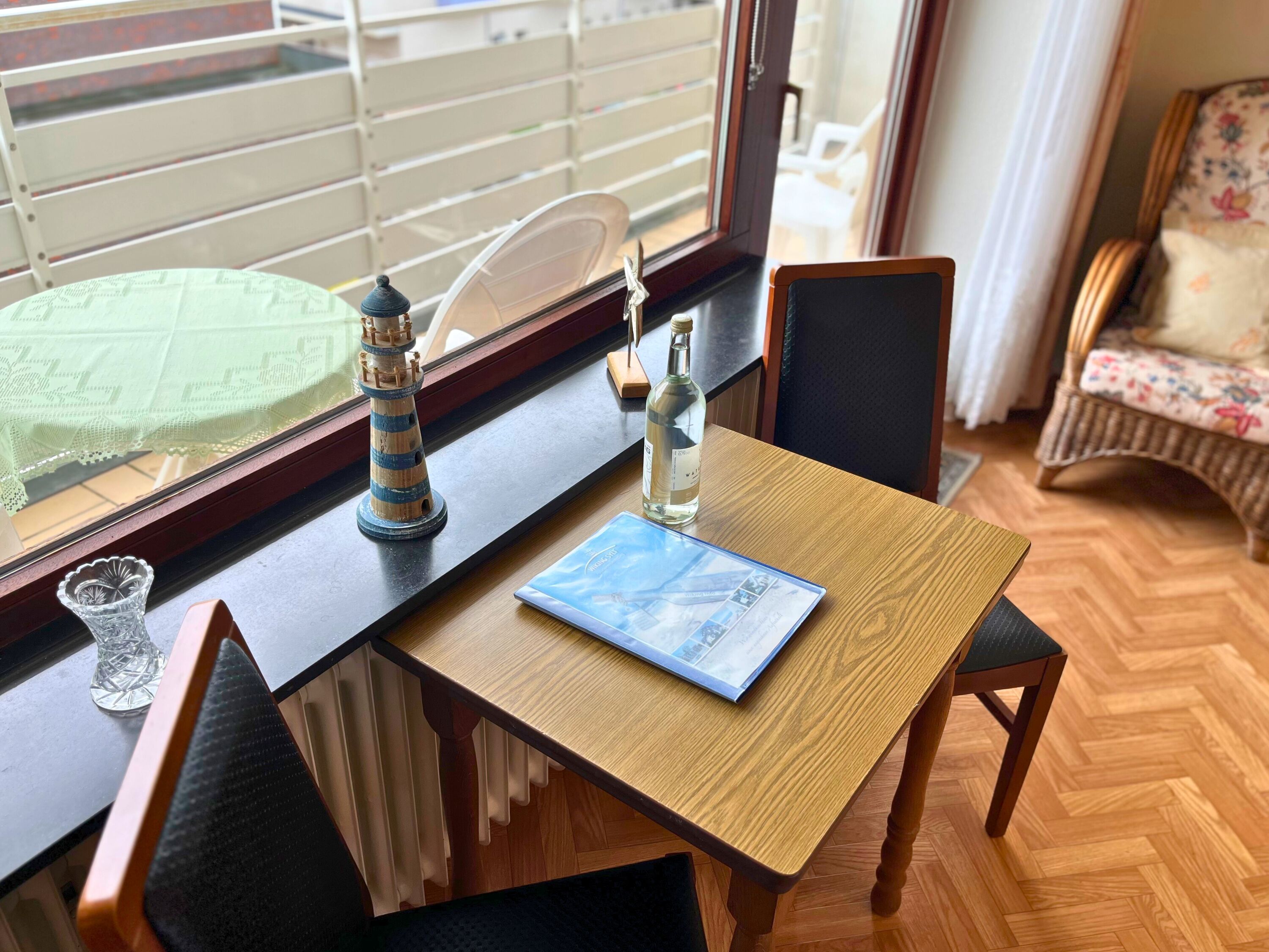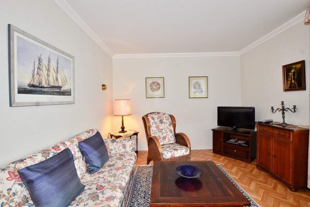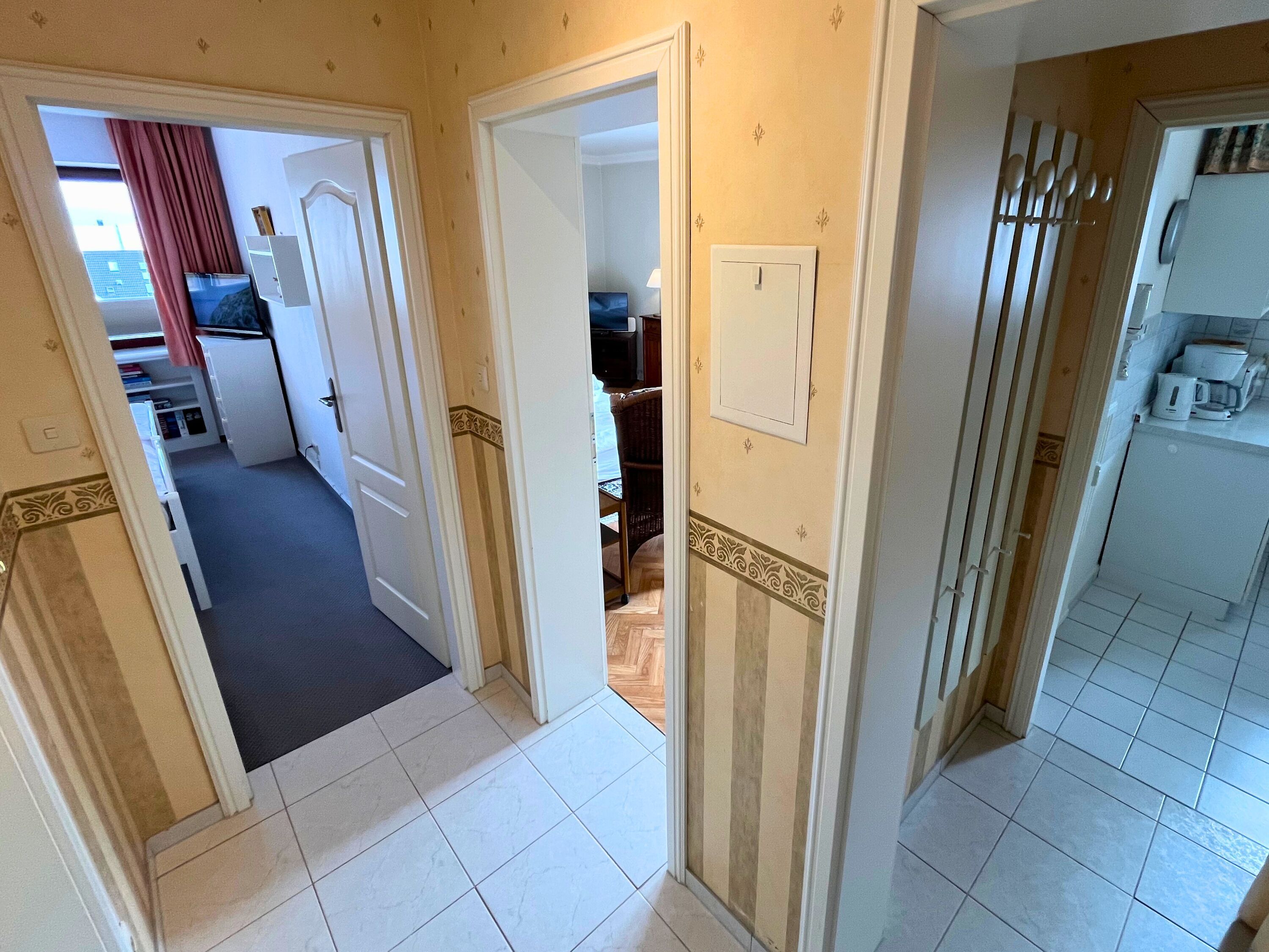 Diese gepflegte 2-Zimmer-Nichtraucher-Ferienwohnung in der 4. Etage bietet auf ca. 48?m² ausreichend Platz für bis zu vier Personen. Der Wohnbereich ist mit einer komfortablen Doppelschlafcouch, einem Essplatz sowie Kabel-TV, DVD-Player, Radio mit CD-Funktion und einem Telefon ausgestattet. WLAN steht selbstverständlich kostenfrei zur Verfügung. Vom Wohnzimmer aus gelangen Sie auf den sonnigen Südbalkon, der zum Verweilen und Entspannen einlädt.