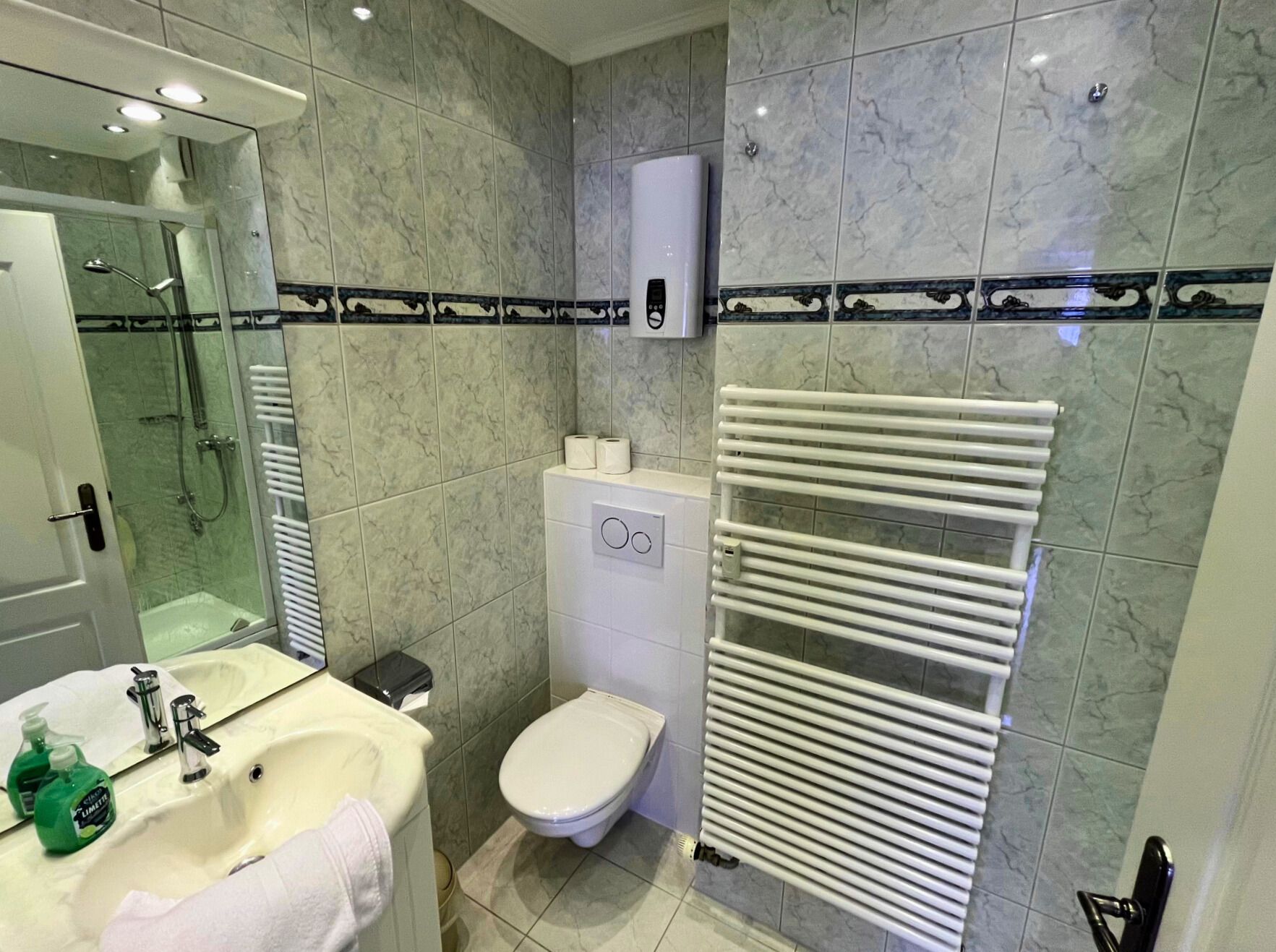 Das moderne Badezimmer verfügt über eine Dusche, ein WC sowie einen Waschtisch. Die Wohnung ist hell, funktional und geschmackvoll eingerichtet ein ideales Urlaubsdomizil für Paare oder kleine Familien. Haustiere sind in dieser Ferienwohnung nicht gestattet.