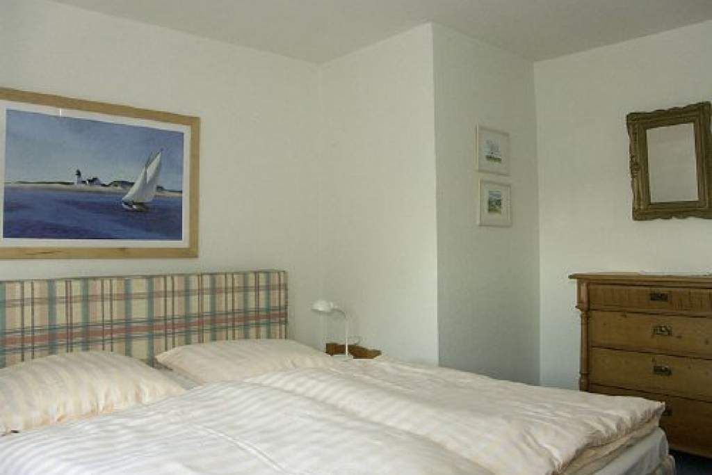 Vom kleinen Vorflur gelangt man in das 1. Schlafzimmer mit Doppelbett (1,80 x 2,00m, Einzelmatratzen), Nachtschränke und einem Kleiderschrank.