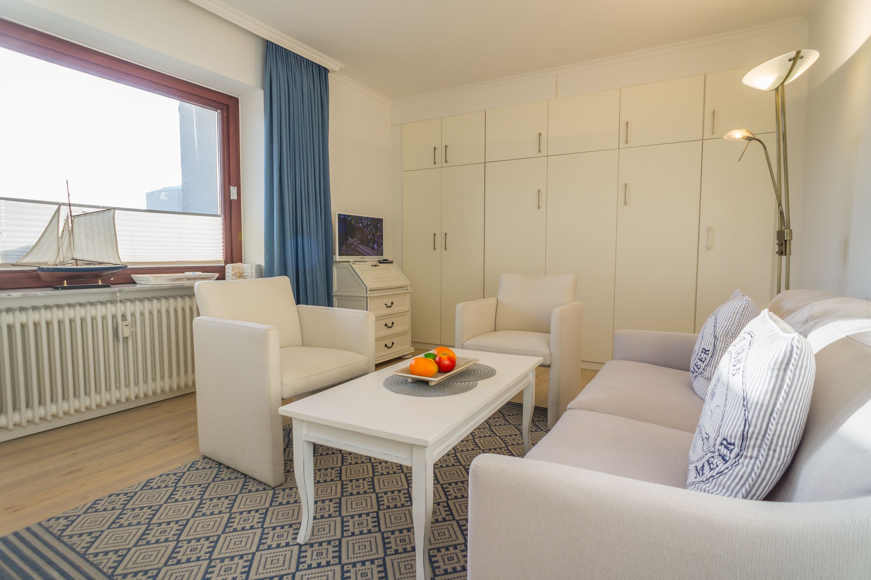 Komfortable 2-Zimmer-Nichtraucher-Ferienwohnung, ca. 48 qm, in der 6. Etage mit Südloggia (mit Balkonmöbeln und Auflagen)