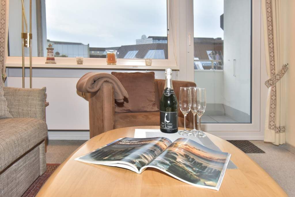 1-Zimmer-Nichtraucher-Ferienwohnung (ca. 25 qm) im Hochparterre zur Seeseite mit Westloggia (Nachmittagssonne, mit Balkonmöbeln) für max. 2 Personen.