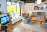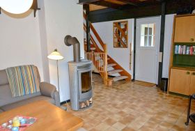 Wohnzimmer:   2 Sessel, 2 Stühle, 3 Stehlampen, Beistelltisch, Couchtisch, DVD-Player, Eckcouch, Ecktisch, Kaminofen nutzbar exkl. Holz, Sat-TV, Schrank, Spiegel, Stereoanlage mit CD-Player, Treppe nach oben, TV-Schrank