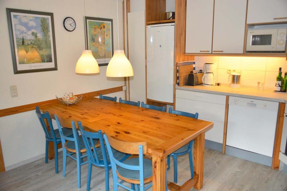 Küche:                  4 Plattenherd mit Ceranfeld und Backofen, 8 Stühle, Einbauküche, Esstisch, Geschirr, Handmixer, Kaffeemaschine, Kochtöpfe, Kühlschrank, Mikrowelle, Spülmaschine, Staubsauger, Toaster, Wasserkocher