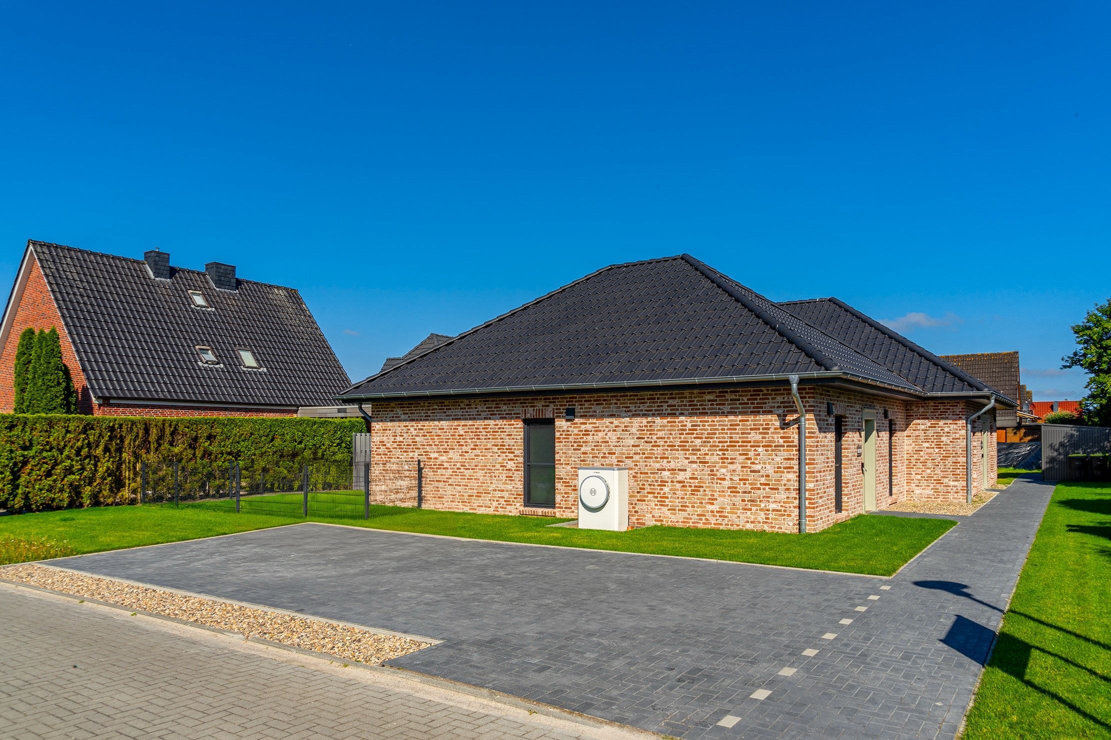 Bitte beachten Sie, dass die Außenanlagen (Grünanlagen, Zäune und Rasen) derzeit aufgrund der Witterung noch nicht fertiggestellt sind und dies voraussichtlich erst im April erfolgen kann.