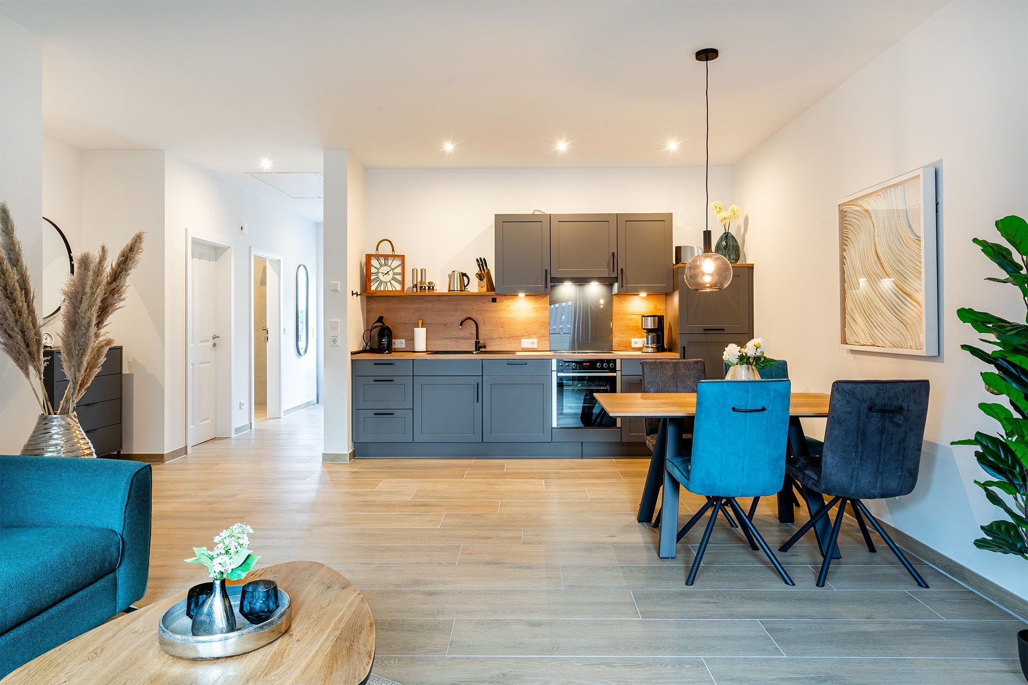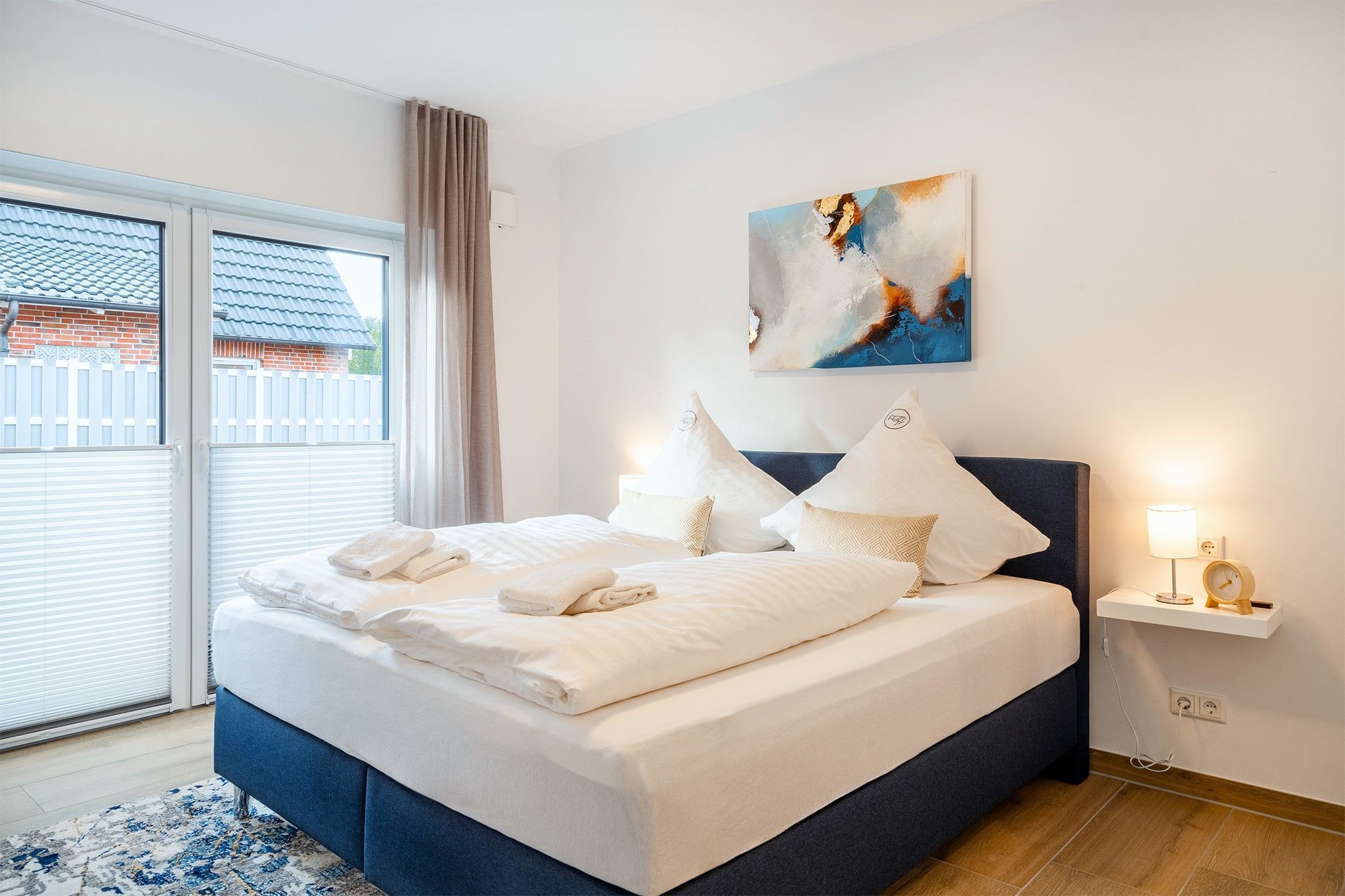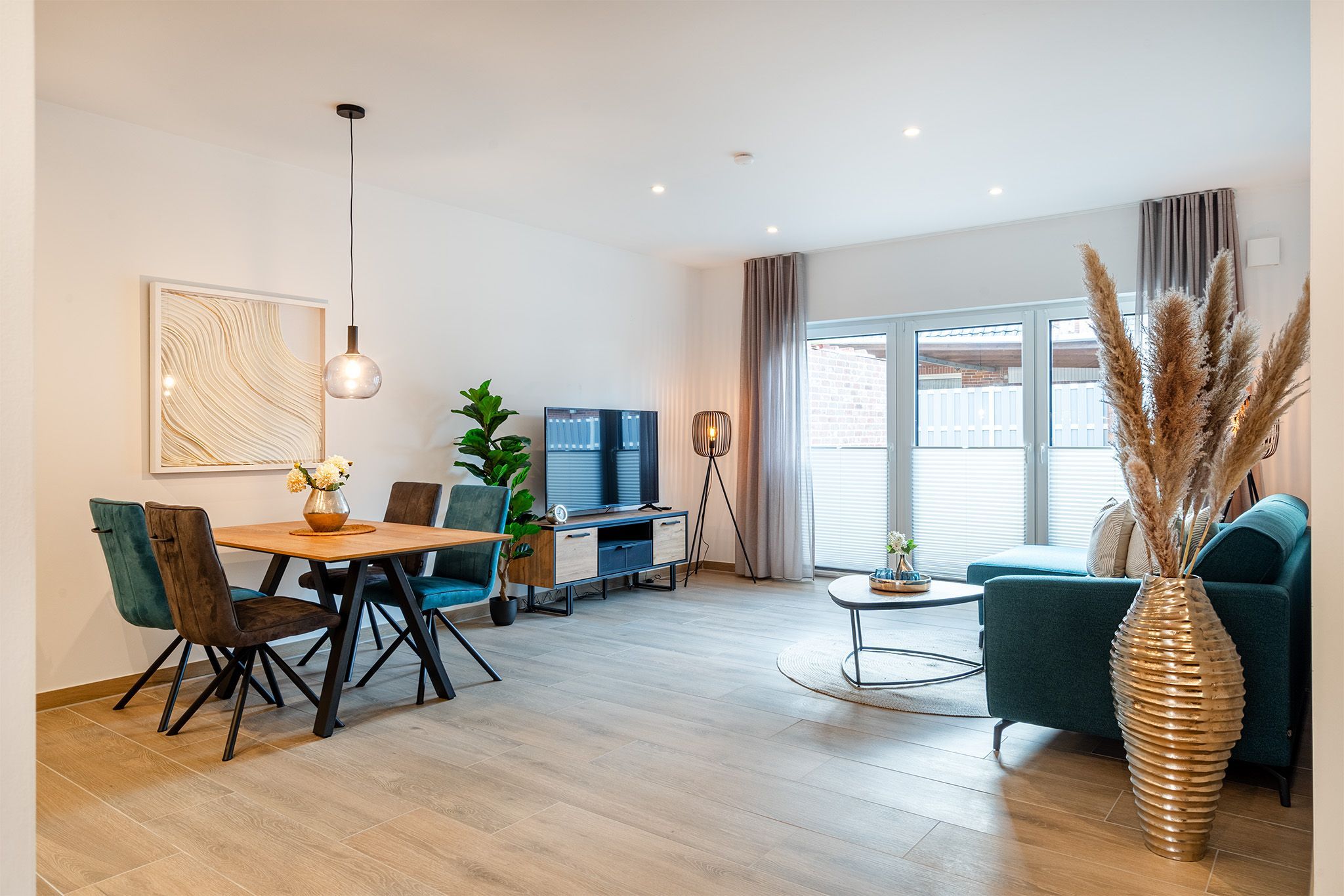 Vom Emsweg aus sind es nur wenige hunderte Meter bis zu den Geschäften, Restaurants oder dem bekannten Greetsieler Hafen. Ihr Feriendomizil verfügt über einen geräumigen und hellen Wohn-Ess-Bereich, eine voll ausgestattete Küche, zwei Schlafzimmer mit bequemen Boxspringbetten, sowie zwei Tageslichtbäder. Auch ein Abstellraum und vor allem ein großzügiger Außenbereich mit Terrasse und eingezäuntem Garten steht zur Verfügung. Ihr Vierbeiner wird sich in diesem Garten sicher wohl fühlen! Außen finden Sie weiterhin einen PKW-Stellplatz, sowie einen Abstellraum mit Lademöglichkeit für E-Bikes. Für den gemeinsamen Urlaub mit Freunden oder der Familie bietet sich unser Ferienhaus Vista 7 an, das direkt an Vista 8 grenzt.