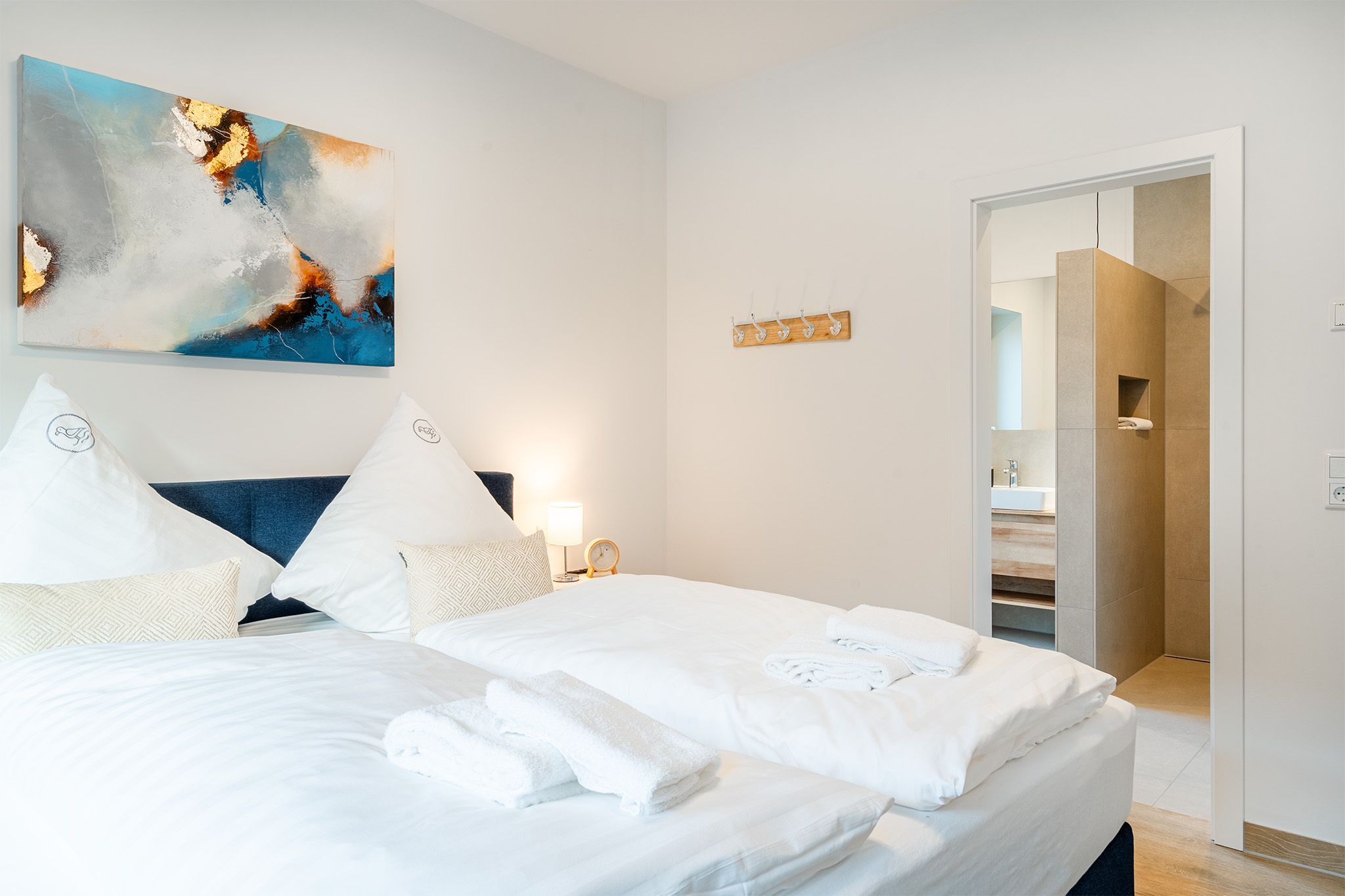 * Gerne bieten wir Ihnen unser Wäschepaket für Ihren Aufenthalt an, welches bezogene Betten, sowie Handtücher (Duschtuch, zwei Handtücher, Duschvorleger und ein Geschirrtuch) umfasst und Euro 19,50 p.P. kostet. Sie können dieses in der Buchungsstrecke unter dem Punkt Ihr Mietpreis hinzu buchen. *