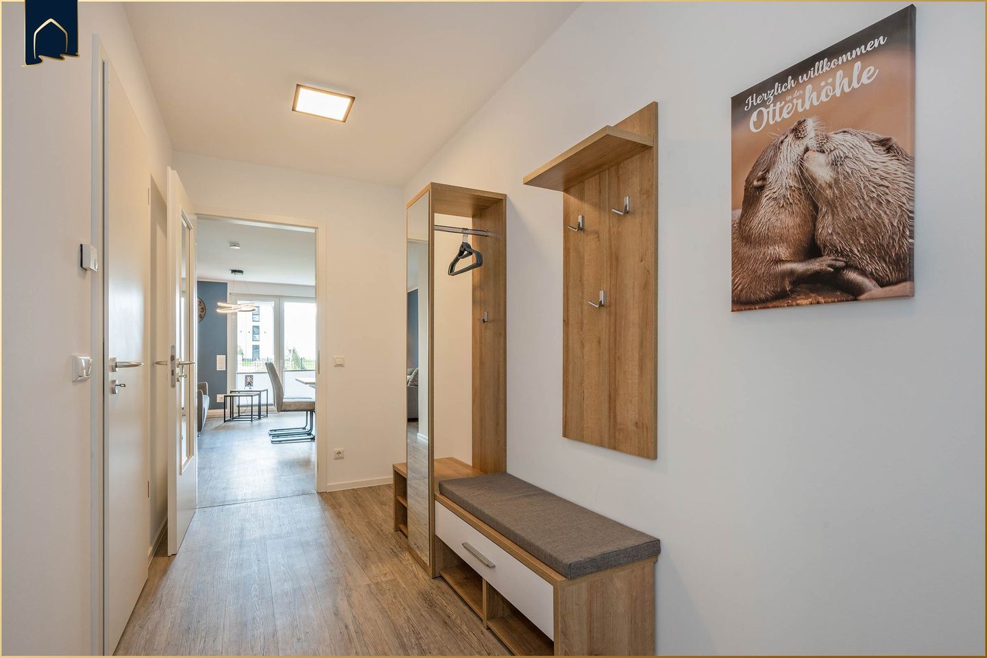 Dieses exklusive 74 m² große Appartement bietet Ihnen eine stilvolle Auszeit mitten in der Natur – ideal für Paare, kleine Familien oder Erholungssuchende. Die moderne Wohnung befindet sich in einem ruhigen Dorf, rund 8 km vom nächsten Strand entfernt, und vereint ländlichen Charme mit hochwertiger Ausstattung. Genießen Sie Ihr Frühstück auf der überdachten Terrasse mit Gartenblick oder starten Sie in den Tag mit einer entspannenden Runde in der hauseigenen Sauna.