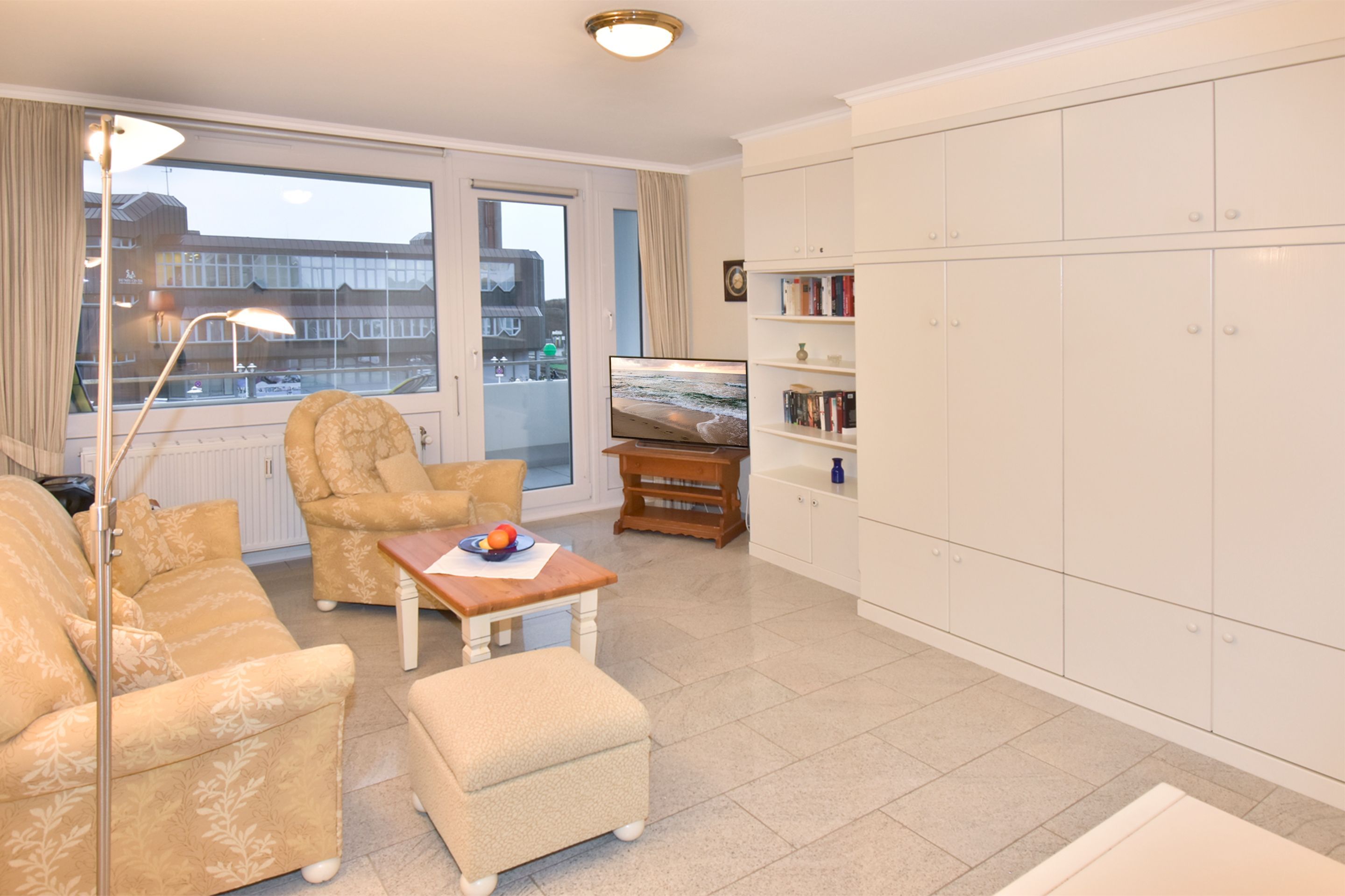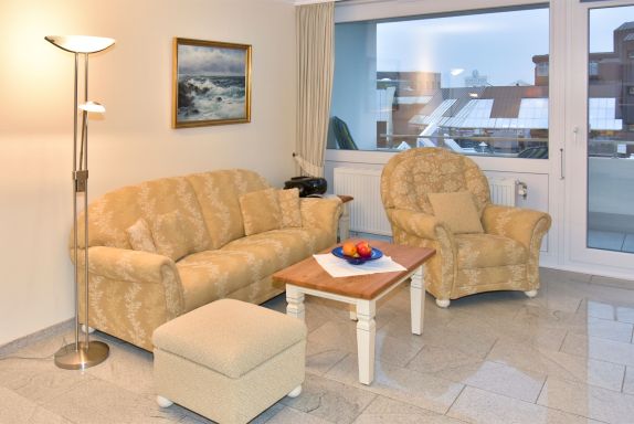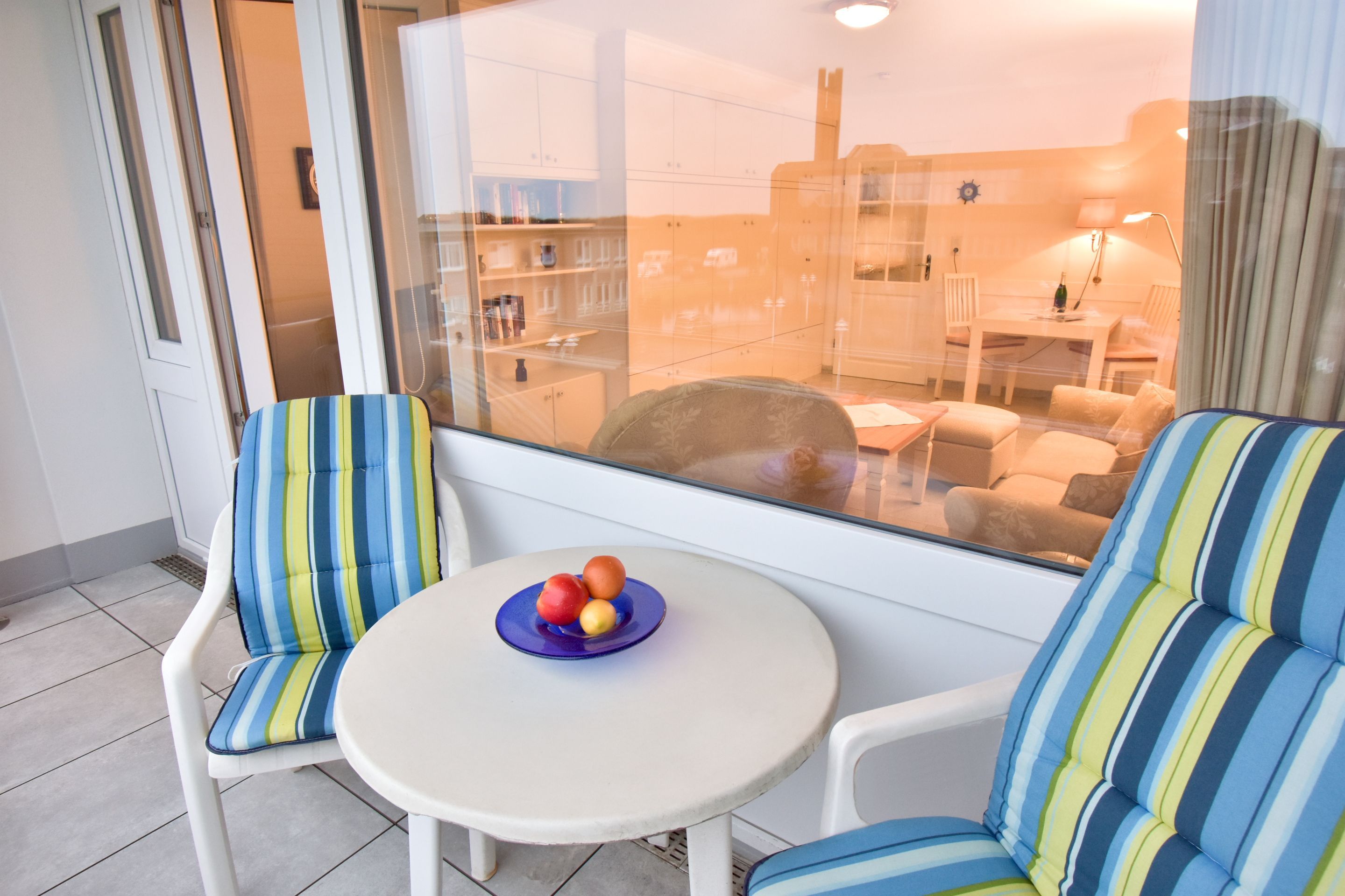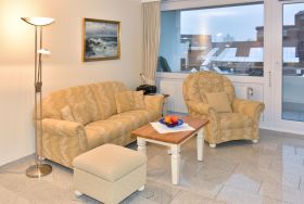 Gemütliches 1-Zimmer-Nichtraucher-Appartement (ca. 32 qm) in der 2. Etage zur Seeseite mit Westloggia (Nachmittagssonne, mit Balkonmöbeln und Auflagen) für max. 2 Personen.