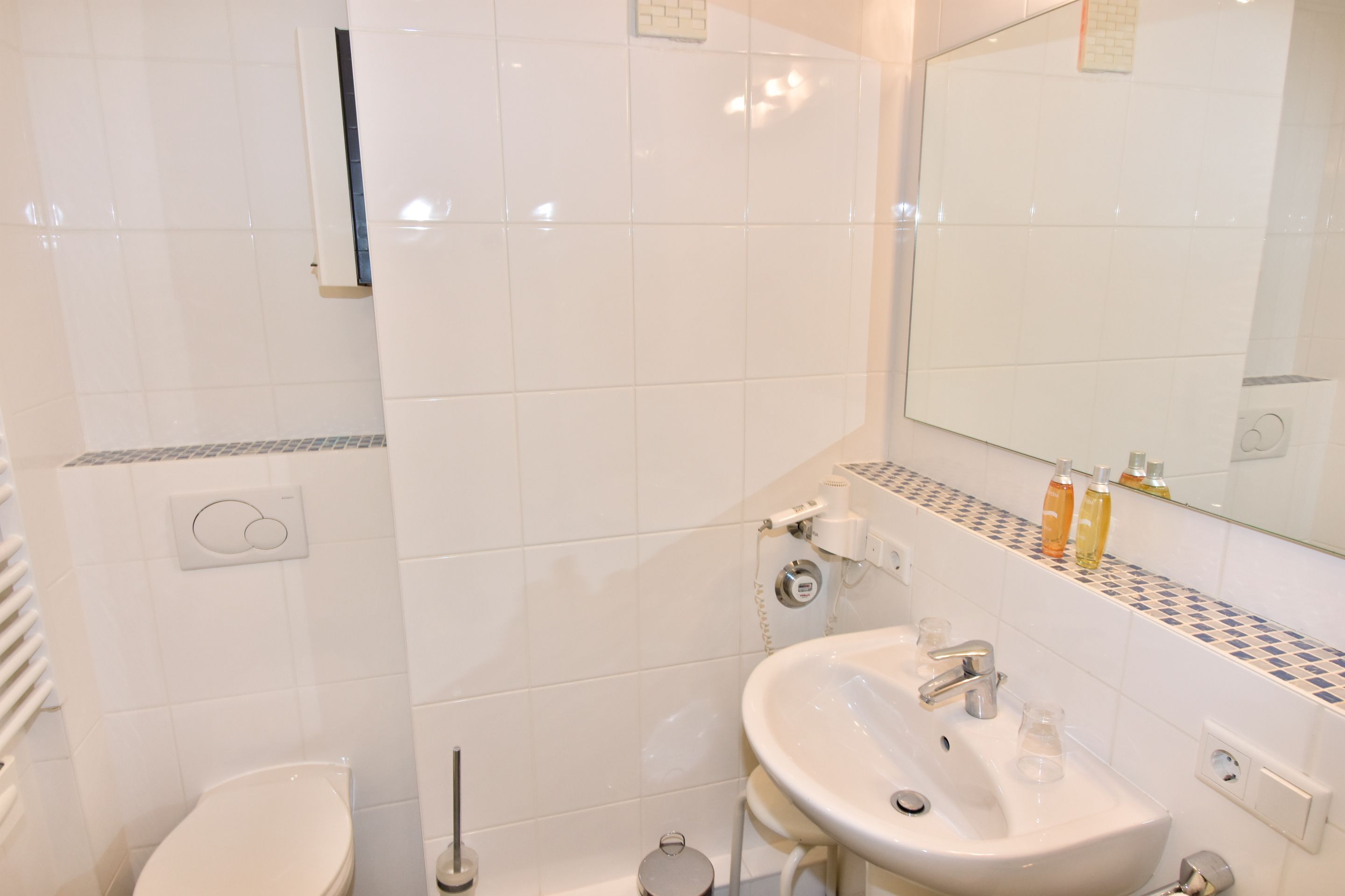 Im neuen Bad befinden sich eine Dusche, ein WC und ein Waschtisch.