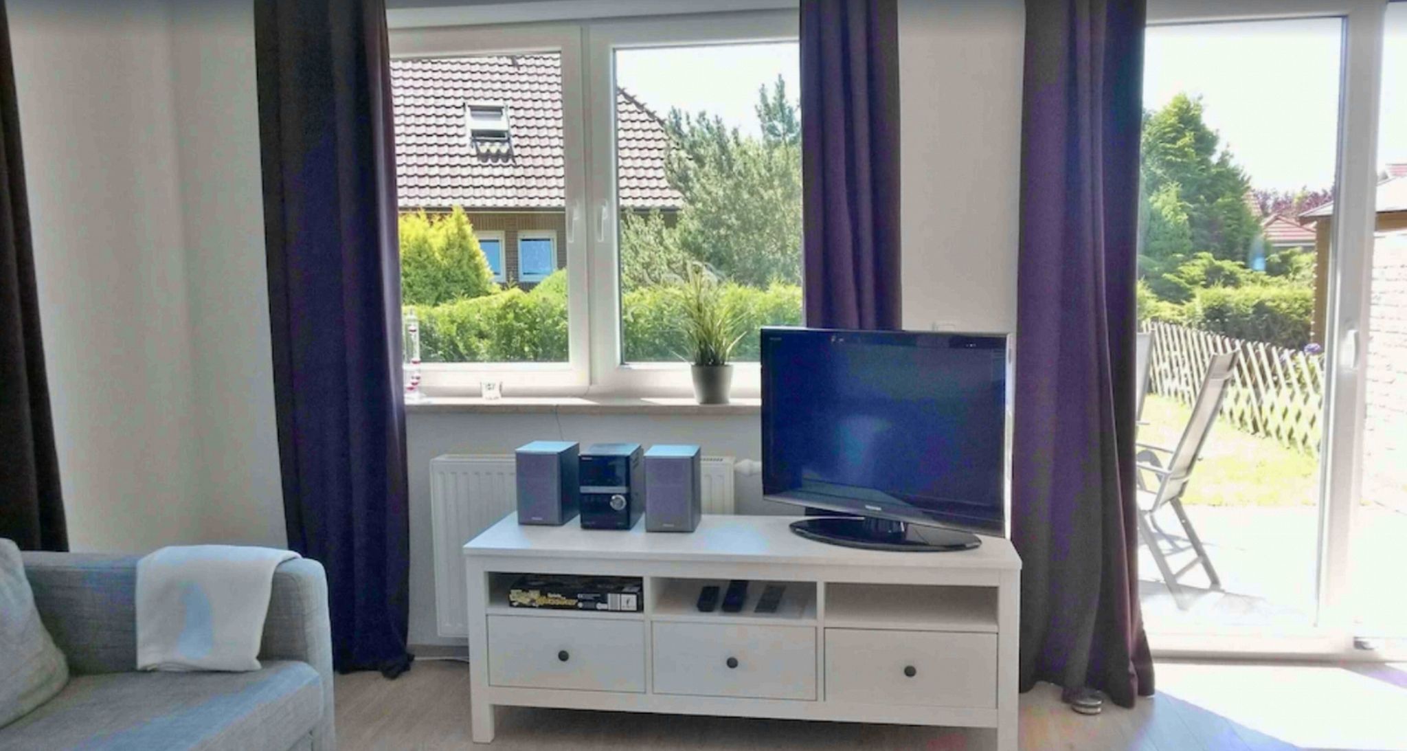 Das Wohnzimmer ist modern und hell eingerichtet. Hier erwartet Sie eine gemütliche Couch, ein freundlich möblierter Esstischbereich sowie schöne Accessoires zum Wohlfühlen. Unterhaltung bieten ein SAT-TV sowie Hifi. 2 Fenster sowie die Glastür zur Terrasse lassen viel Sonne ins Haus. Nach draußen gelangen Sie auf die möblierte Terrasse sowie in den schönen, ruhigen Garten mit Südausrichtung, in dem Sie erholsame Urlaubsstunden verbringen können.