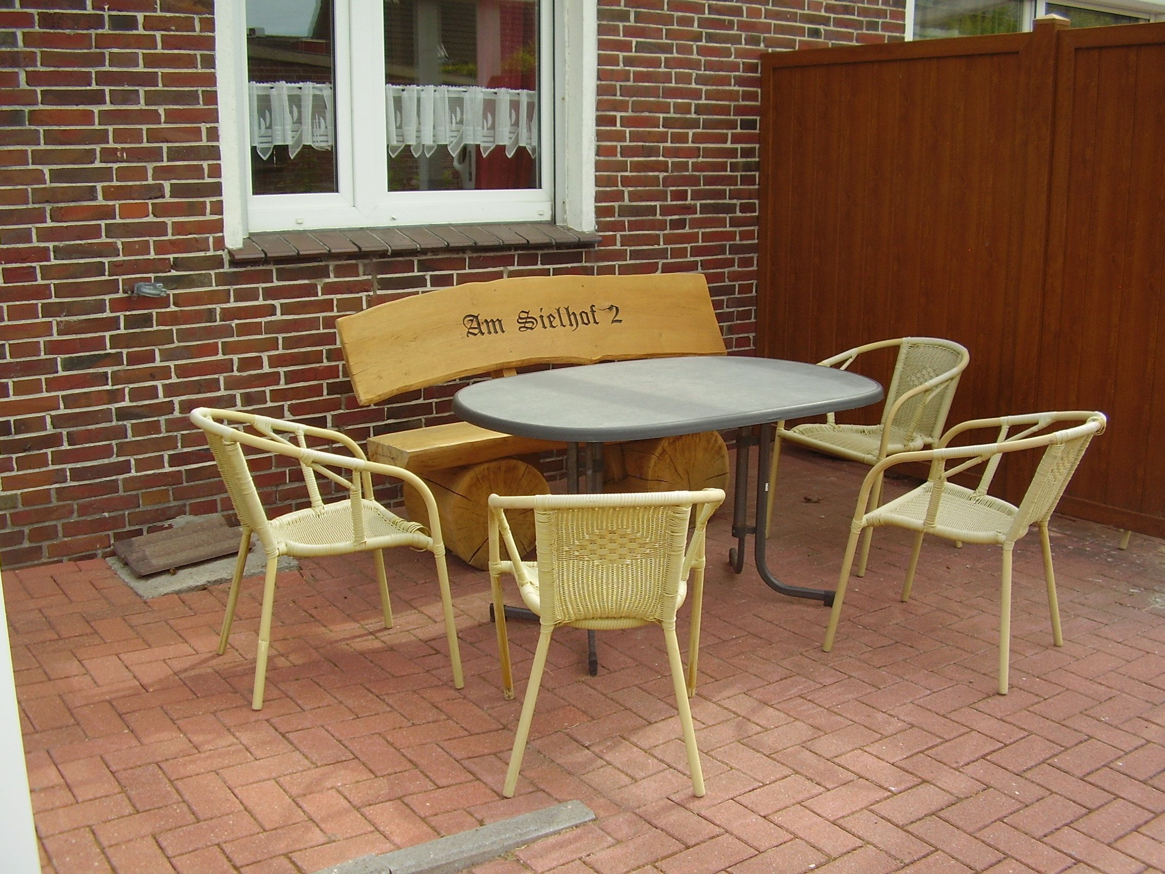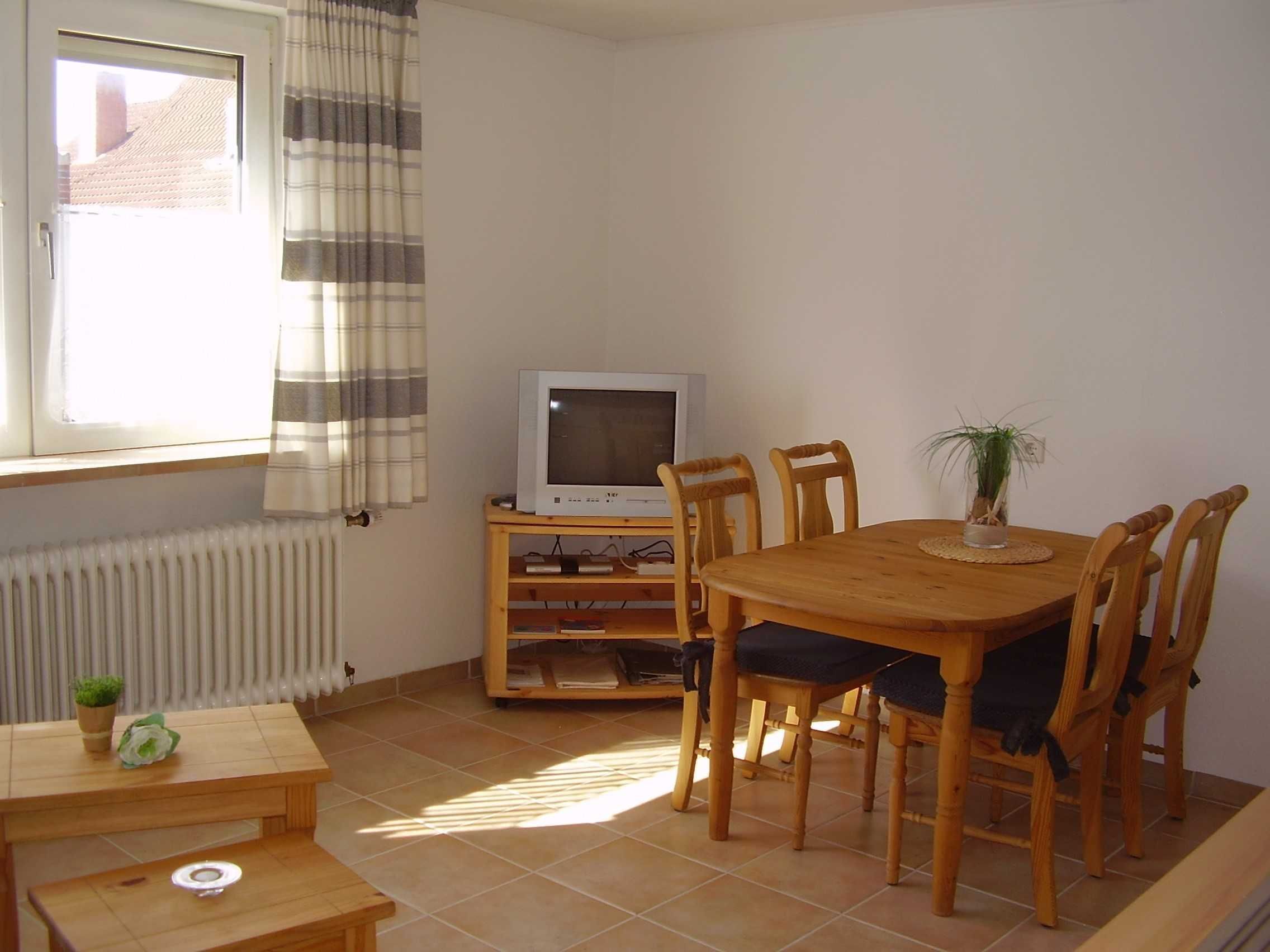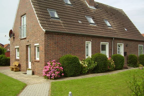 Erdgeschoss Ferienwohnung mit Glas überdachter überdachter Terrasse und Garten mit Kamingrill im Nordseebad Dornumersiel für bis zu vier Personen und einem Baby. Die Fussböden sind gefliest und die Fenster sind mit Rollladen ausgestattet. Die Wohnung verfügt über ein Tageslichtbadezimmer.