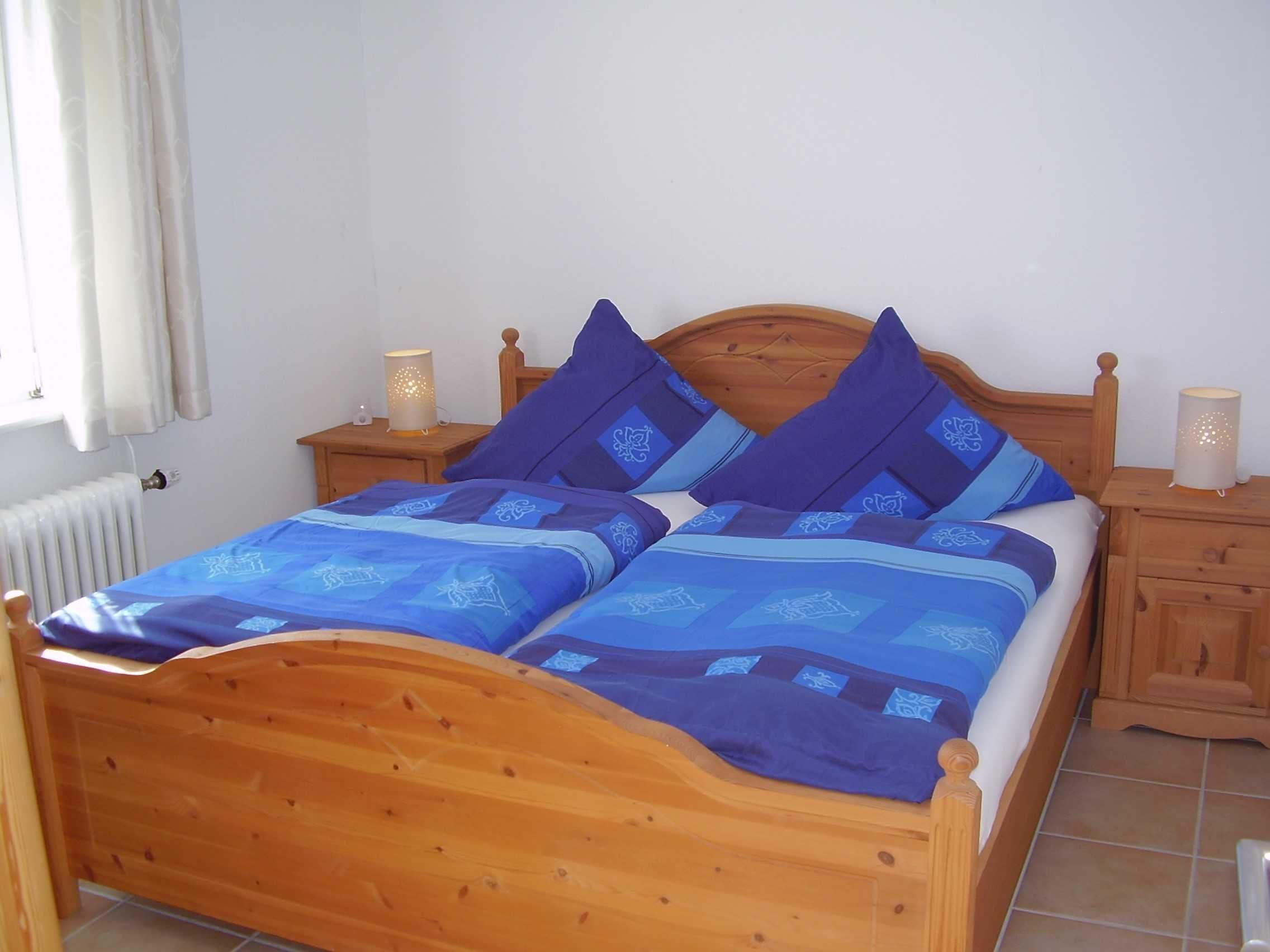 Schlafzimmer mit Doppelbett.