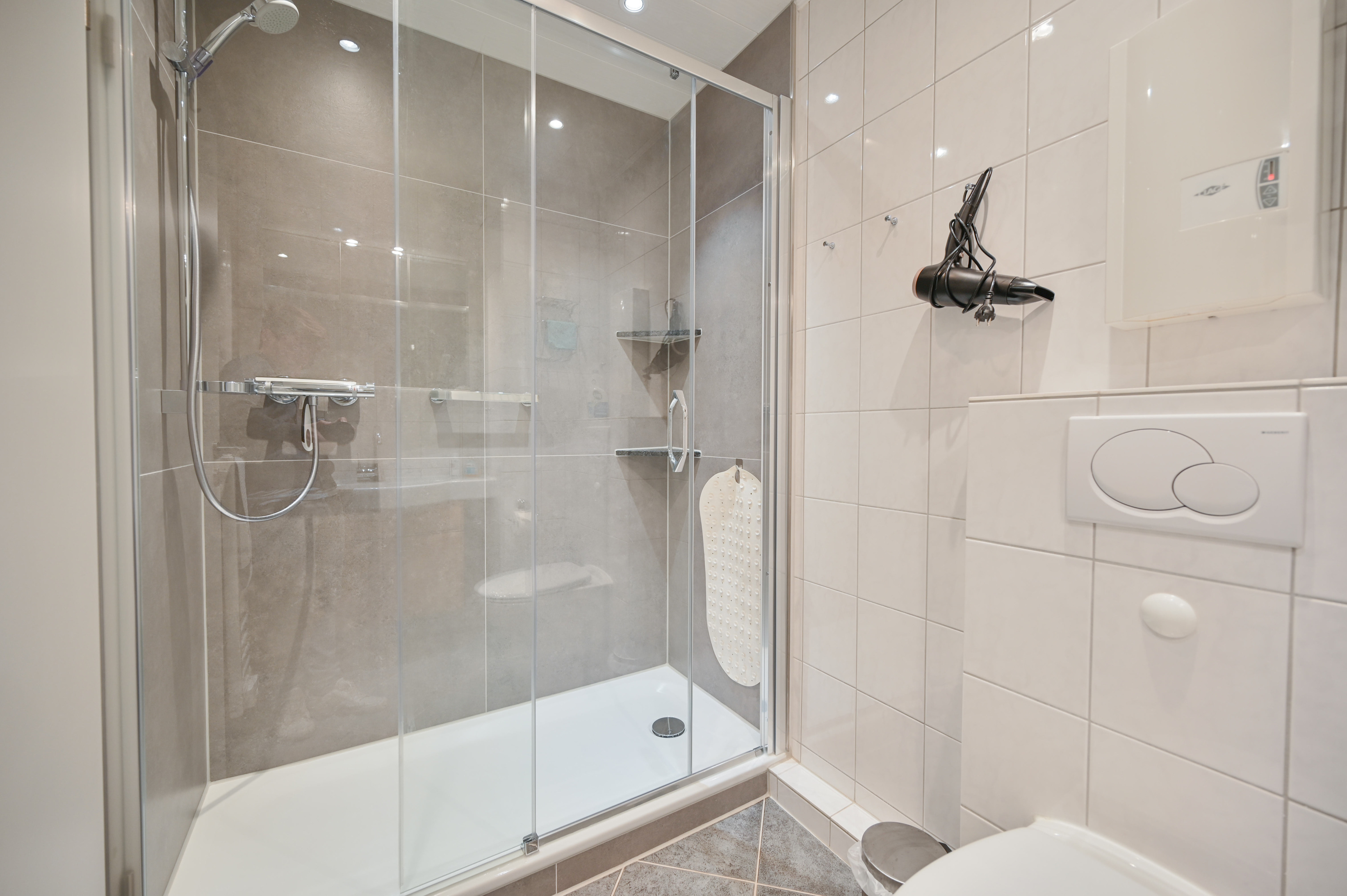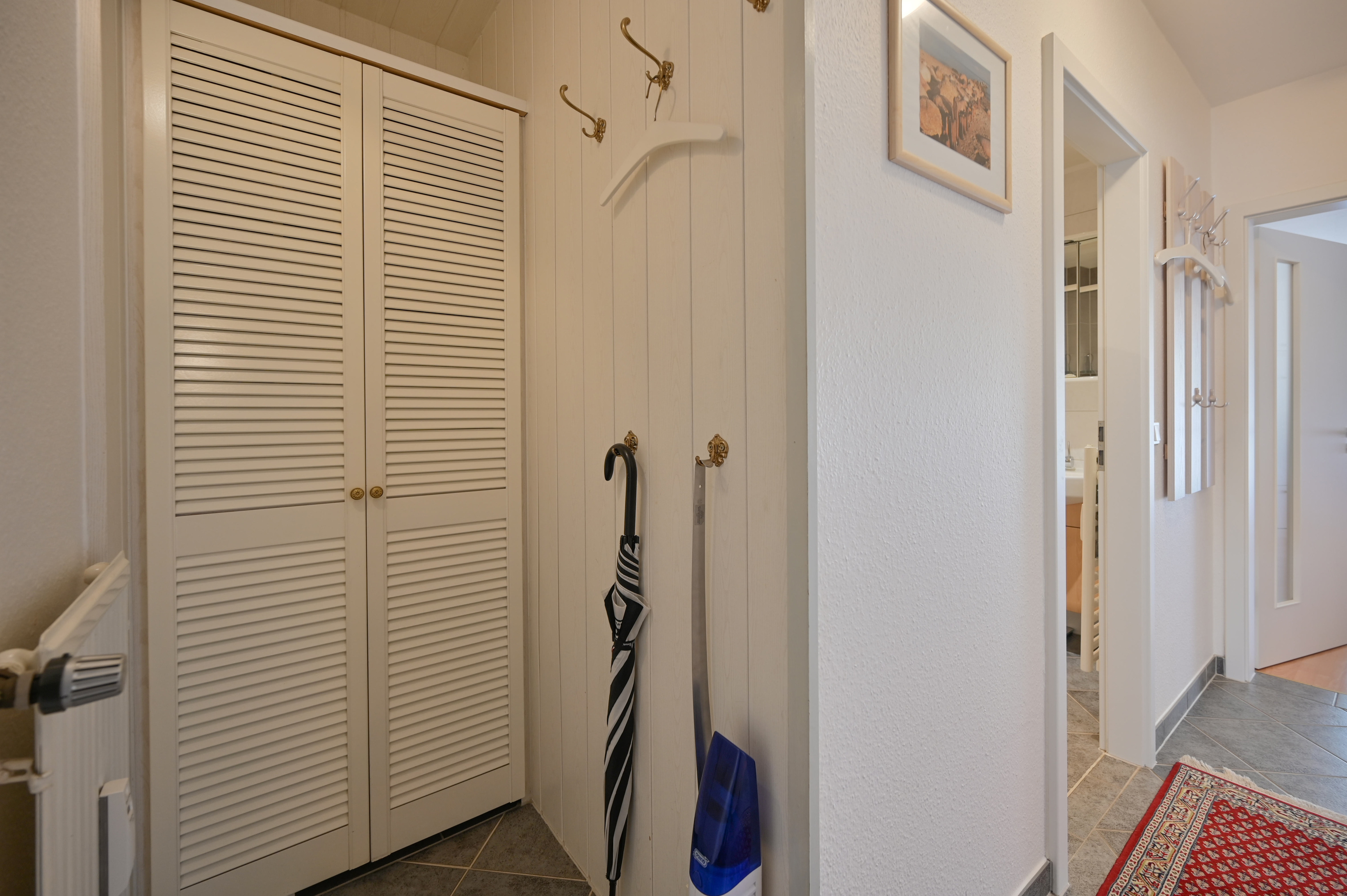 Die Ferienwohnung verfügt darüber hinaus über ein Bad mit Dusche und WC.