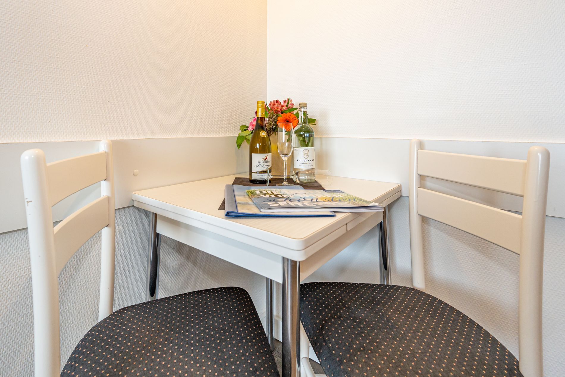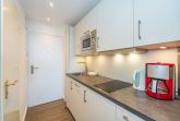 Die Küchenzeile hat eine Mikrowelle, ein Induktionsherd mit 2 Kochfeldern und einen Kühlschrank mit 3* Gefrierfach. Kaffeemaschine, Wasserkocher und Toaster gehören zur Grundausstattung.