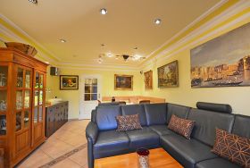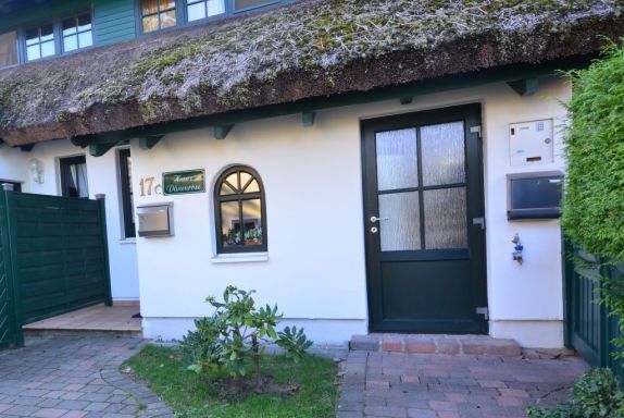 Reihenhaus. Am Ortsrand, 500 m vom Meer, 2 km vom Strand. Zur Mitbenutzung: Sitzplatz, Feuerstelle. Im Hause: Zentralheizung. Parkplatz beim Haus. Lebensmittelgeschäft 800 m, Restaurant, Bushaltestelle 500 m, Bahnstation 20 km, Sandstrand 2 km, Freibad 13 km, Hallenbad 13 km, Badebucht 2 km. Golfplatz (18 Loch) 30 km, Reitstall 5 km. Alle sieben reetgedeckten Reihenhäuser sind hochwertig ausgestattet und die Inneneinrichtung ist bis ins Detail abgestimmt. Jedes Haus verfügt über einen mindestens 109 cm grossen TV-Bildschirm im Wohn-/Esszimmer und über ein zweites Sat-TV (72 cm) in einem der Schlafzimmer. Holzkohle- und Gasgrill aus Brandschutzgründen am Haus nicht erlaubt, nur Elektrogrill möglich.