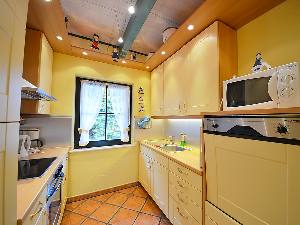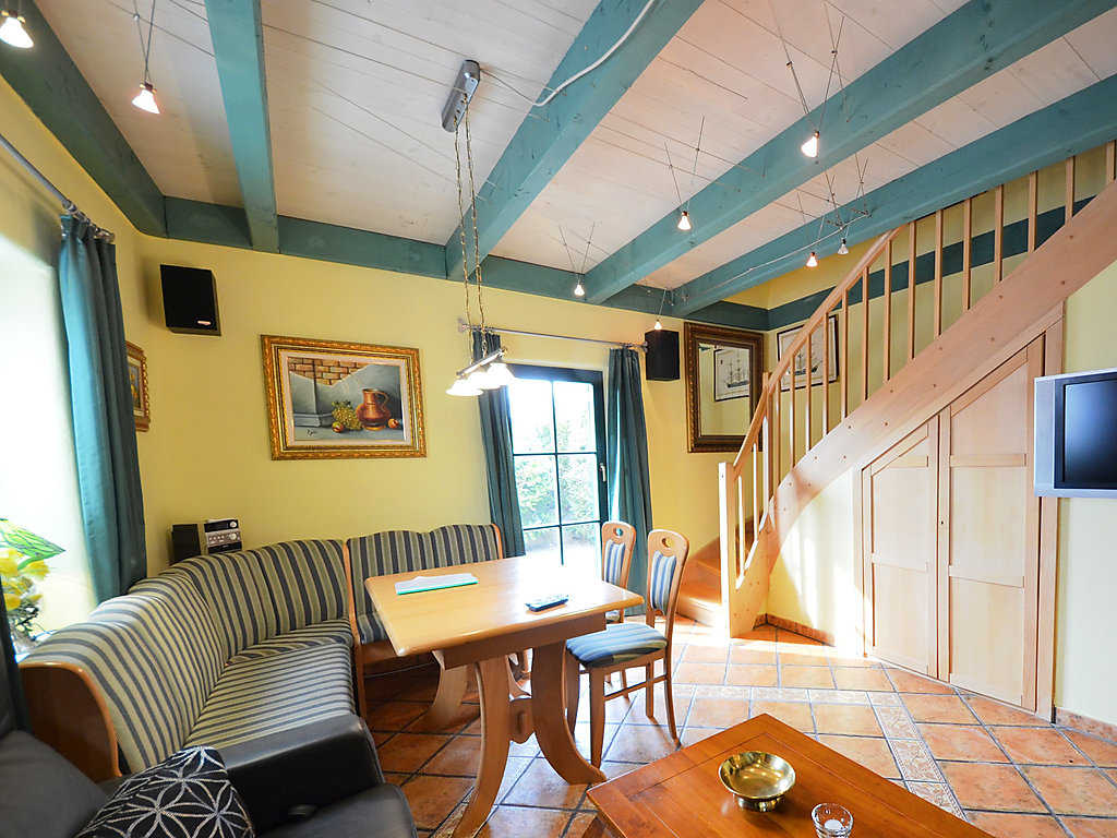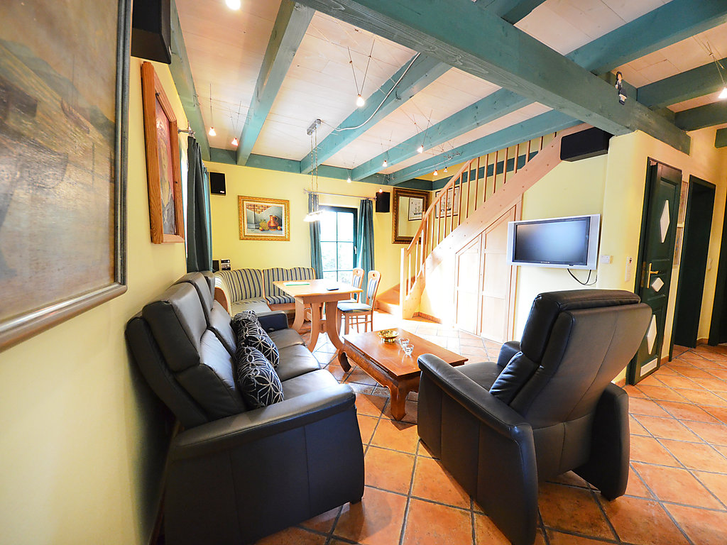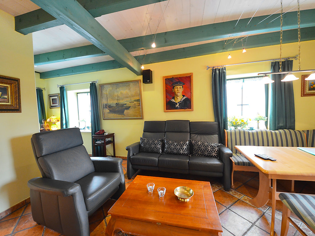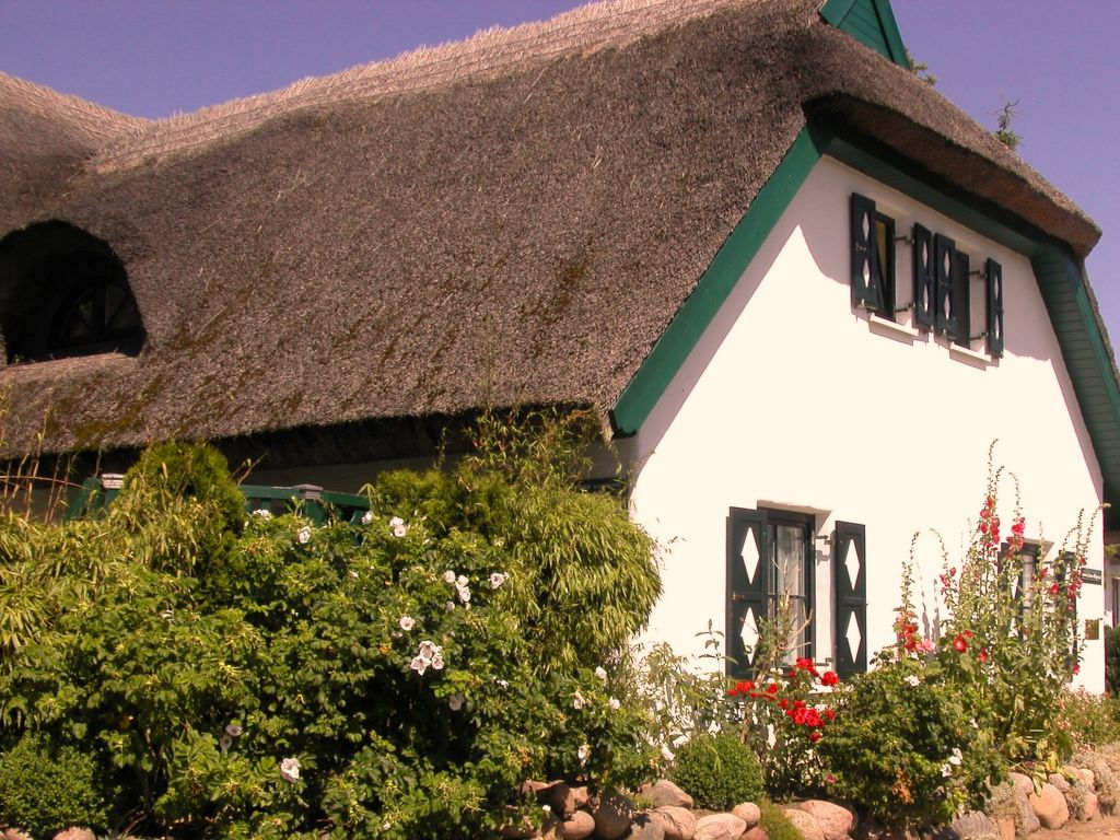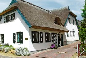 Reihenhaus. Im Ort, 700 m vom Meer, 2 km vom Strand. Im Hause: Zentralheizung. Parkplatz beim Haus. Lebensmittelgeschäft, Restaurant 200 m, Bushaltestelle 600 m, Bahnstation 20 km, Sandstrand 2 km, Freibad 13 km, Hallenbad 13 km, Badebucht 2 km. Golfplatz (18 Loch) 30 km, Reitstall 5 km. Die drei reetgedeckten Reihenhäuser und das dahinter liegende Doppelhaus (DE9098.120.1 und DE9098.120.2) sind hochwertig ausgestattet und die Inneneinrichtung ist bis ins Detail abgestimmt. Jedes Reihenhaus verfügt über einen mindestens 109 cm grossen TV-Bildschirm im Wohn-/Esszimmer.