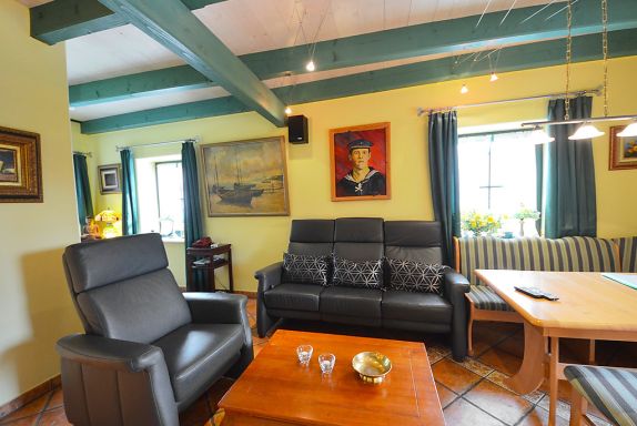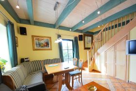 Kapitänshaus, 4-Zimmer-Reihenhaus 87 m2 auf 2 Stockwerken, im Erdgeschoss. Wohn-/Esszimmer mit Sat-TV, Video und Stereoanlage. 1 Doppelzimmer. Offene Küche (Backofen, Geschirrspüler, Mikrowelle, elektrische Kaffeemaschine). Dusche/WC. Obergeschoss: 2 abgeschrägte Doppelzimmer. Dusche/WC. Terrasse. Terrassenmöbel. Zur Verfügung: Waschmaschine, Wäschetrockner, Kinderhochstuhl. Internet (Wireless LAN, gratis). Parkplatz (2 Autos) beim Haus. Bitte beachten: Nichtraucher-Haus. Maximal 1 Haustier/Hund erlaubt. 2 kostenlose PKW-Stellplätze vorhanden, auf Wunsch und nach Vorbestellung können weitere Stellplätze zu je EUR 4.00/Tag in 300 m Entfernung bereitgestellt werden.