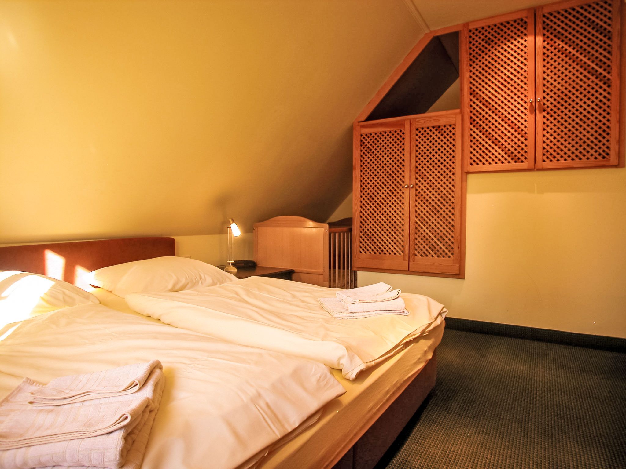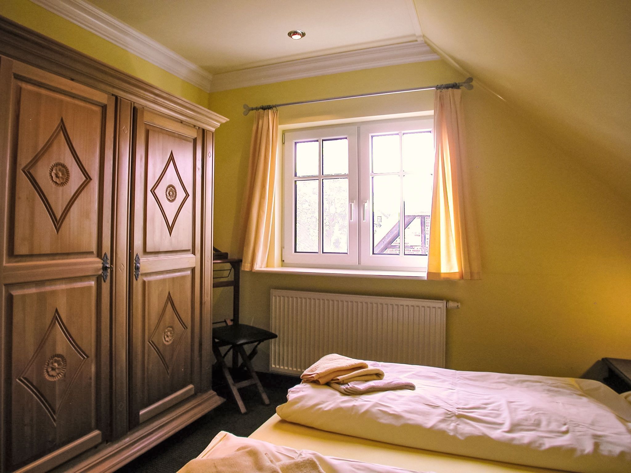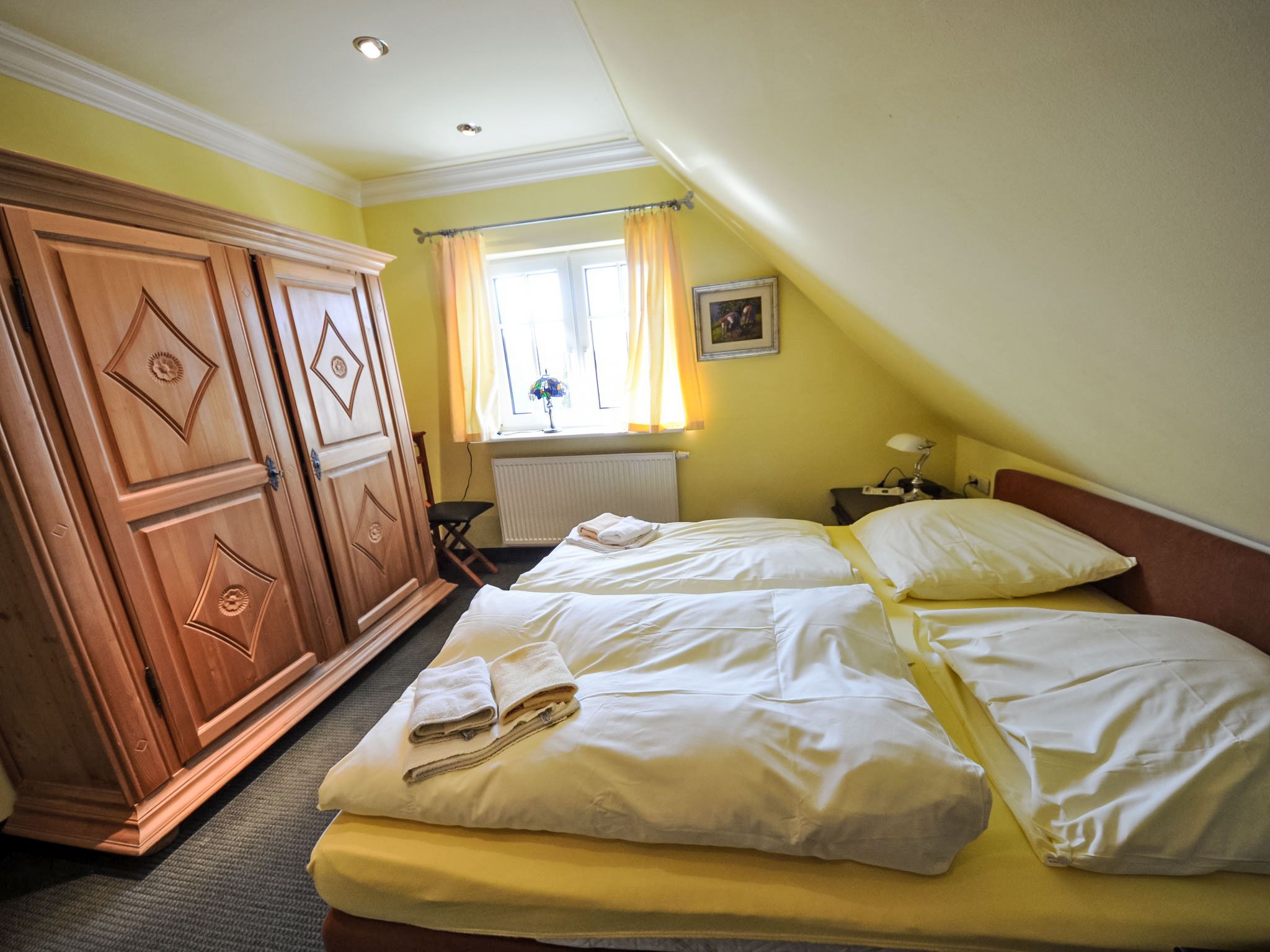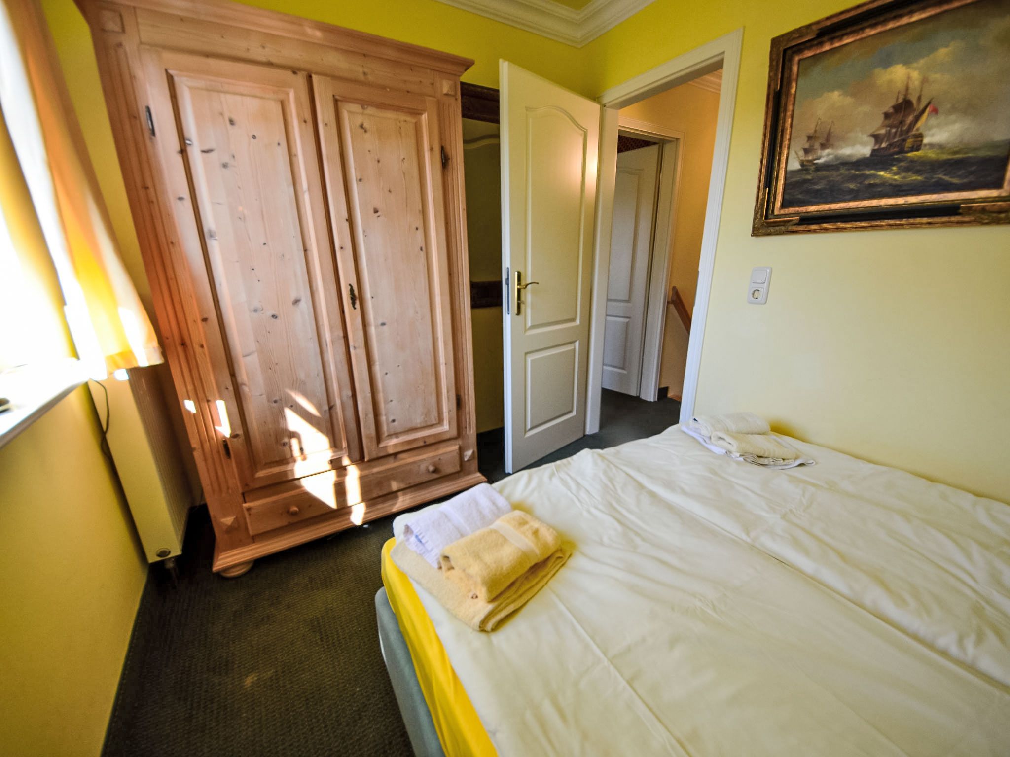 Fischerhaus, 3-Zimmer-Reihenhaus 67 m2 auf 2 Stockwerken, im Erdgeschoss. Wohn-/Esszimmer mit Sat-TV, Video, CD und Stereoanlage. Offene Küche (Backofen, Geschirrspüler, Mikrowelle, elektrische Kaffeemaschine). Sep. WC. Obergeschoss: 2 abgeschrägte Doppelzimmer. Dusche/WC. Terrasse, kleiner Garten. Terrassenmöbel. Zur Verfügung: Waschmaschine, Wäschetrockner, Kinderhochstuhl. Internet (WLAN, gratis). Parkplatz (1 Auto) beim Haus. Bitte beachten: Nichtraucher-Haus. Maximal 1 Haustier/Hund erlaubt. Rauchmelder, Feuerlöscher. 1 kostenloser PKW-Stellplatz vorhanden, auf Wunsch und nach Vorbestellung können weitere Stellplätze zu je EUR 4.00/Tag in 300 m Entfernung bereitgestellt werden.