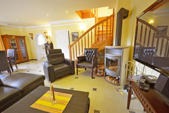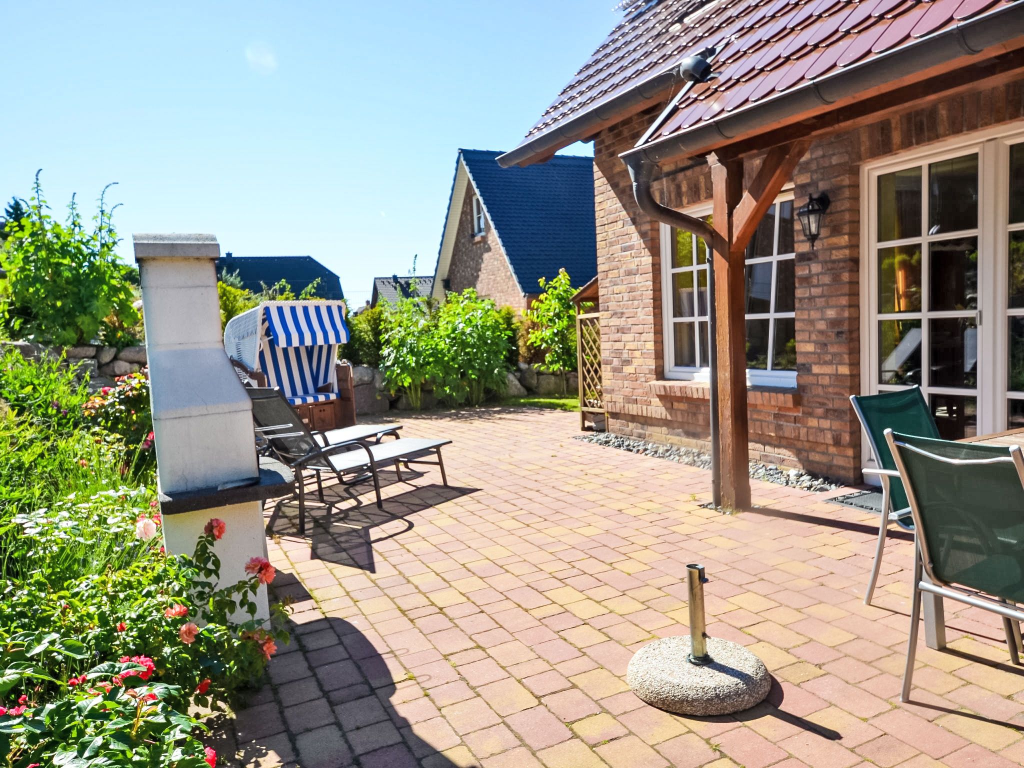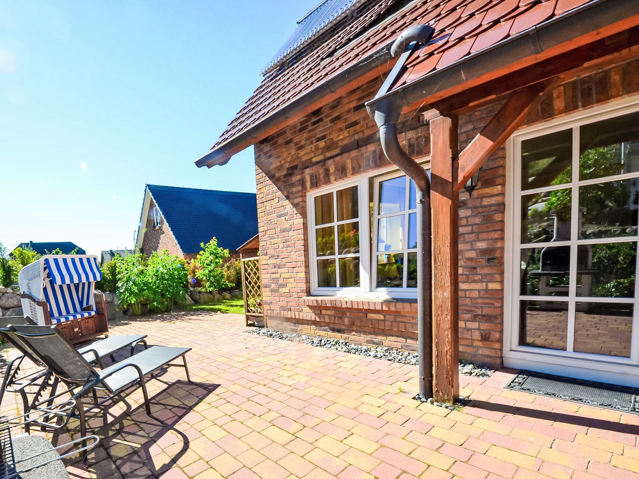 Gager 3 km von Gross-Zicker: Komfortables Doppelhaus. Am Ortsrand, 300 m vom Zentrum von Gager, 300 m vom Meer, 3 km vom Strand. Im Hause: Sauna, Zentralheizung. Brötchenservice möglich. Lebensmittelgeschäft, Restaurant 50 m, Bushaltestelle Gager, Am Hafen 550 m, Bahnstation 21 km, Sandstrand 3 km, Freibad 14 km, Hallenbad 14 km. Golfplatz (18 Loch) 31 km, Reitstall 6 km. Beide Doppelhaushälften mit eigenem Gartenteil. Das Erdgeschoss und die Bäder im Obergeschoss verfügen über Fussbodenheizung.