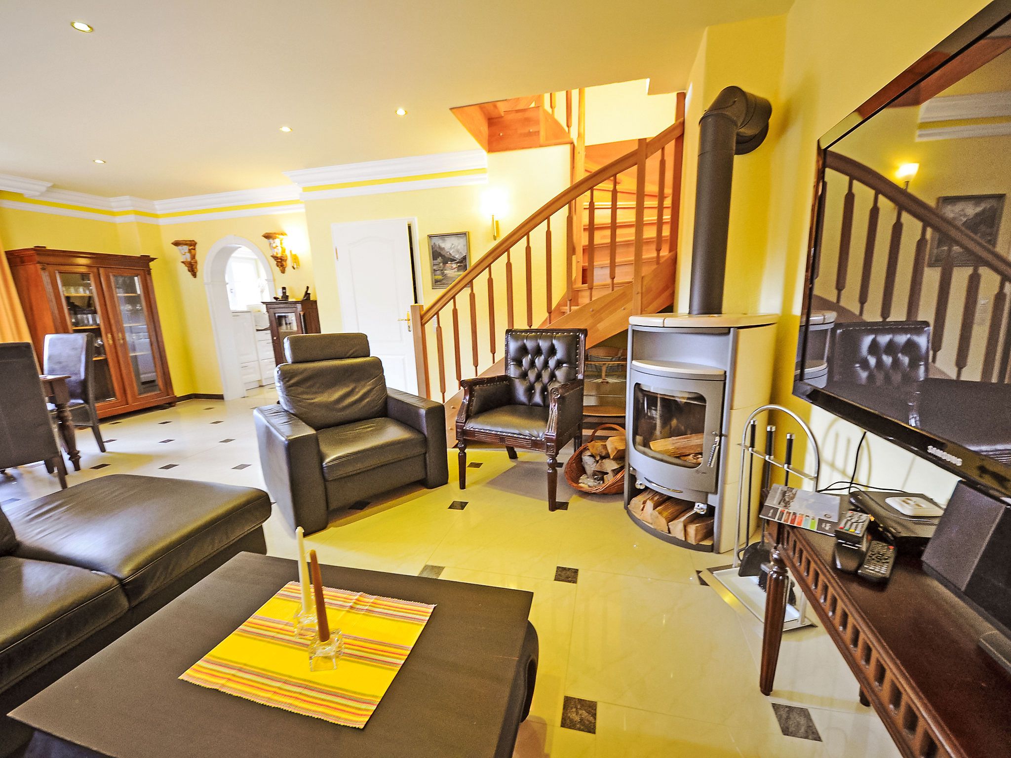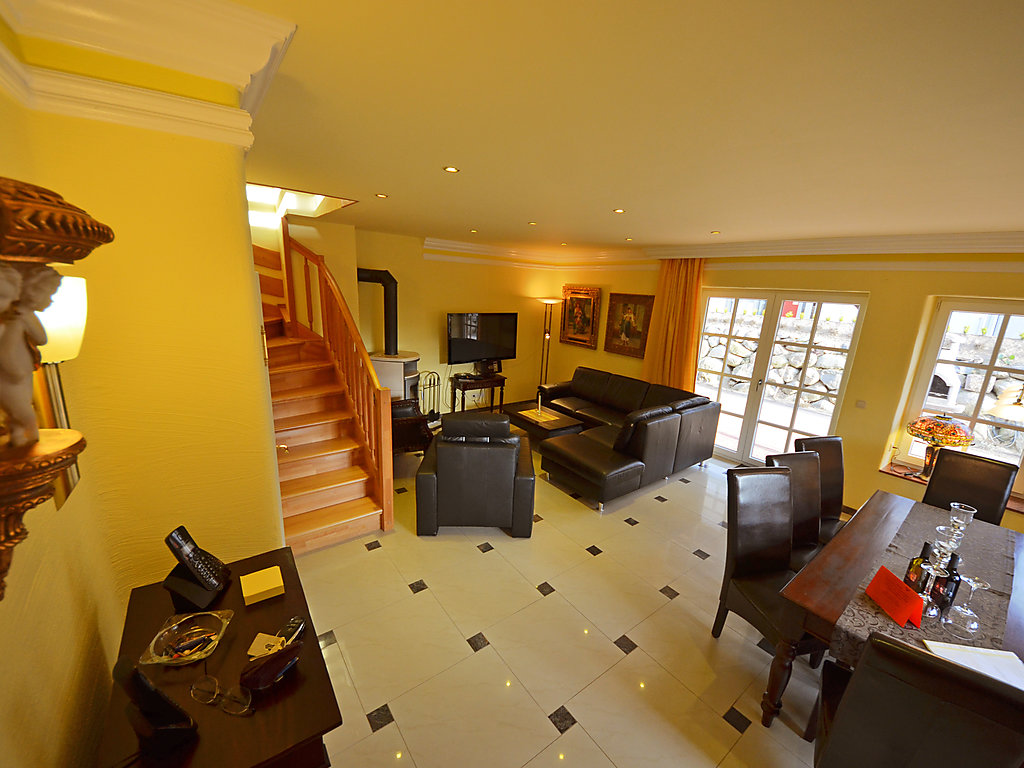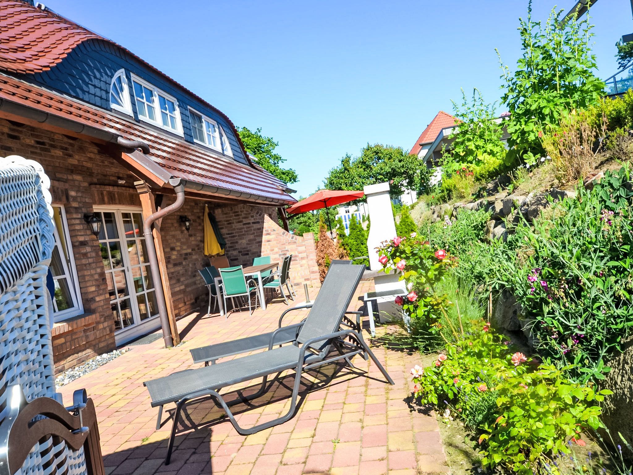 Bel Air, 5-Zimmer-Doppelhaushälfte 140 m2 auf 3 Stockwerken, im Erdgeschoss. Komfortabel und geschmackvoll eingerichtet: Wohn-/Esszimmer mit Schwedenofen und Sat-TV (Flachbildschirm), Video und Stereoanlage. Ausgang zum Garten, zur Terrasse. Offene Küche (Backofen, Geschirrspüler, 4 Glaskeramikplatten, Mikrowelle, elektrische Kaffeemaschine). Dusche/WC. Bodenheizung. Obergeschoss: 2 Doppelzimmer. 1 Doppelzimmer mit Bad/Bidet/WC und Sat-TV. Dusche/Bidet/WC. Dachgeschoss: 1 abgeschrägtes Doppelzimmer mit Dusche/WC. Terrasse teilweise überdacht. Terrassenmöbel, Gartengrill. Zur Verfügung: Waschmaschine, Wäschetrockner, Sauna, Kinderhochstuhl, Holz (gratis). Internet (Wireless LAN, gratis). Parkplatz (2 Autos) beim Haus. Bitte beachten: Nichtraucher-Haus. Maximal 1 Haustier/Hund erlaubt. Rauchmelder, Feuerlöscher. Aus den Zimmern im Obergeschoss teilweise Blick auf die Küste und den Yachthafen. Auf Wunsch und nach Vorbestellung kann ein dritter PKW-Stellplatz für EUR 4.00/Tag bereitgestellt werden.