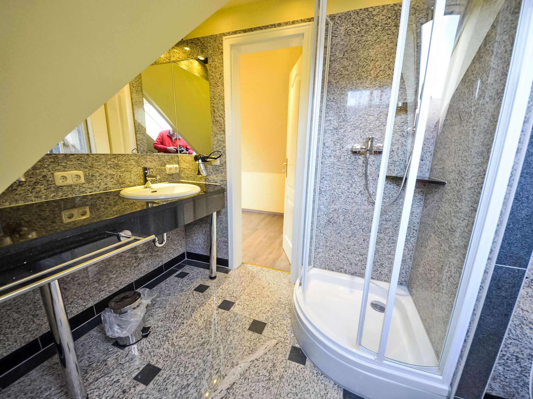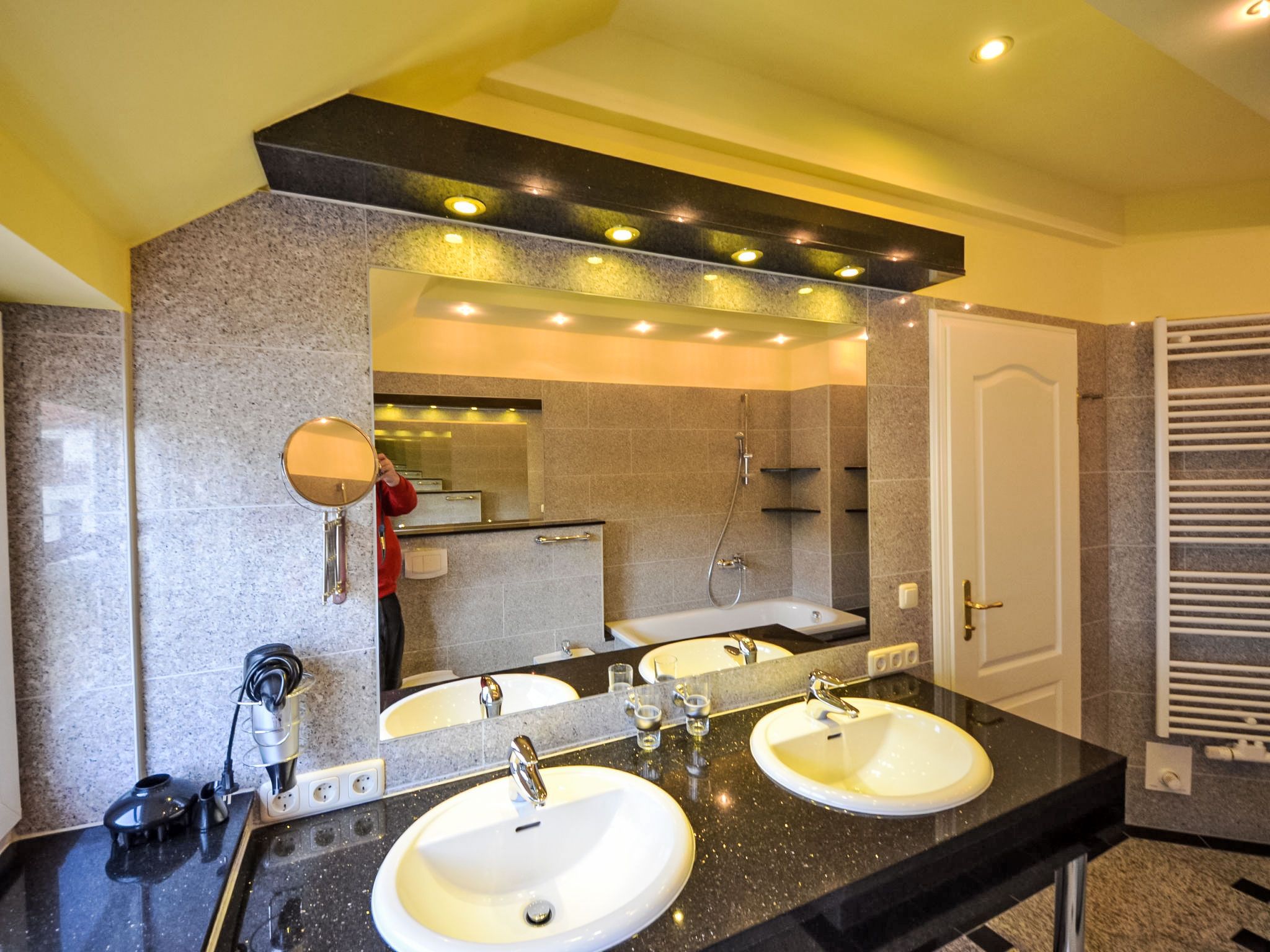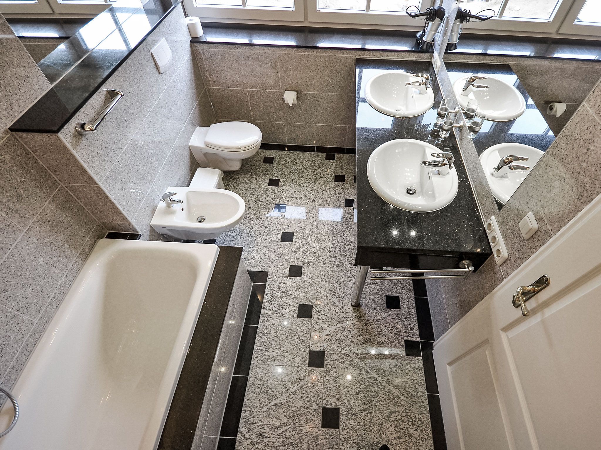 Bel Air, 5-Zimmer-Doppelhaushälfte 140 m2 auf 3 Stockwerken, im Erdgeschoss. Komfortabel und geschmackvoll eingerichtet: Wohn-/Esszimmer mit Schwedenofen und Sat-TV (Flachbildschirm), Video und Stereoanlage. Ausgang zum Garten, zur Terrasse. Offene Küche (Backofen, Geschirrspüler, 4 Glaskeramikplatten, Mikrowelle, elektrische Kaffeemaschine). Dusche/WC. Bodenheizung. Obergeschoss: 2 Doppelzimmer. 1 Doppelzimmer mit Bad/Bidet/WC und Sat-TV. Dusche/Bidet/WC. Dachgeschoss: 1 abgeschrägtes Doppelzimmer mit Dusche/WC. Terrasse teilweise überdacht. Terrassenmöbel, Gartengrill. Zur Verfügung: Waschmaschine, Wäschetrockner, Sauna, Kinderhochstuhl, Holz (gratis). Internet (Wireless LAN, gratis). Parkplatz (2 Autos) beim Haus. Bitte beachten: Nichtraucher-Haus. Maximal 1 Haustier/Hund erlaubt. Rauchmelder, Feuerlöscher. Aus den Zimmern im Obergeschoss teilweise Blick auf die Küste und den Yachthafen. Auf Wunsch und nach Vorbestellung kann ein dritter PKW-Stellplatz für EUR 4.00/Tag bereitgestellt werden.