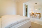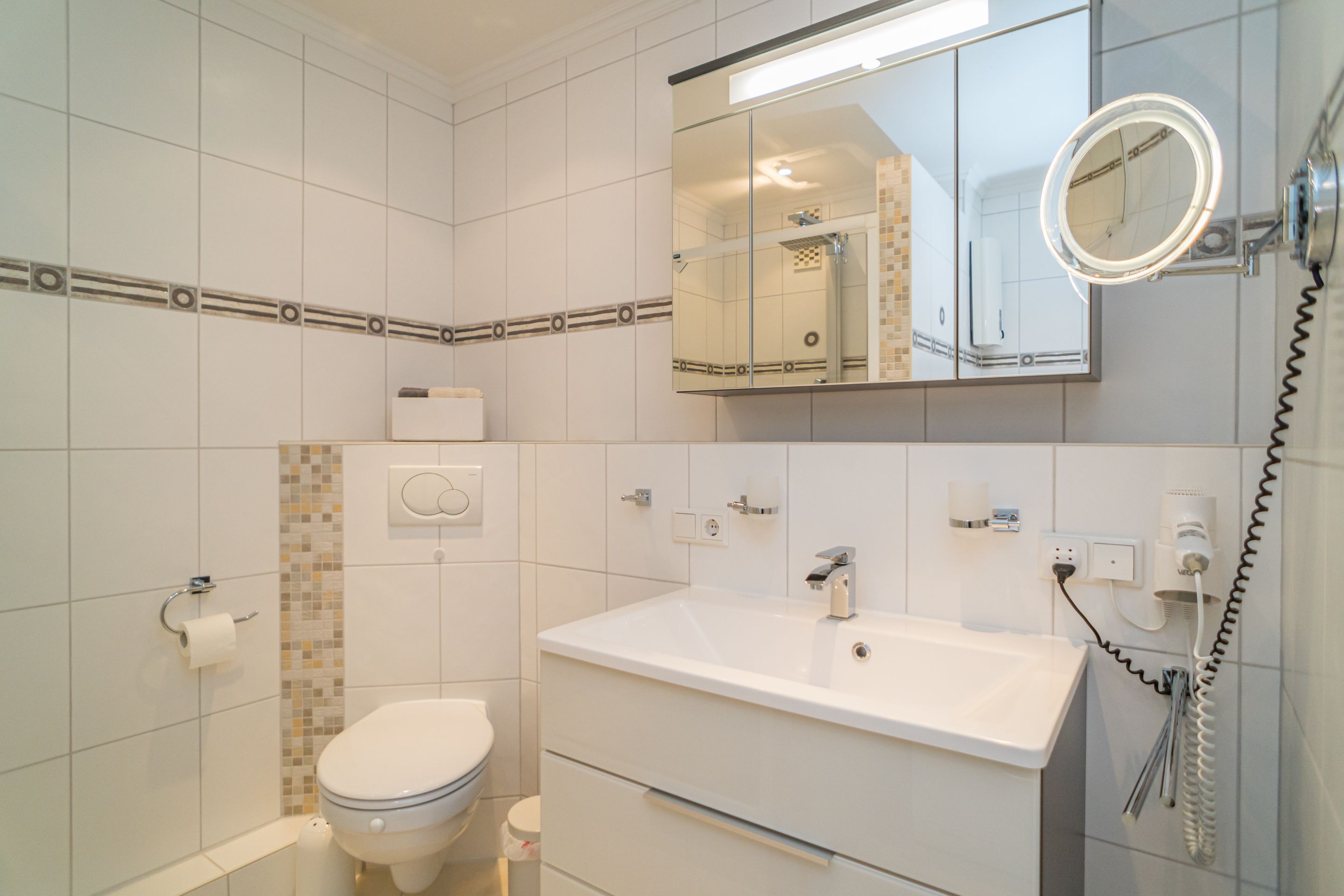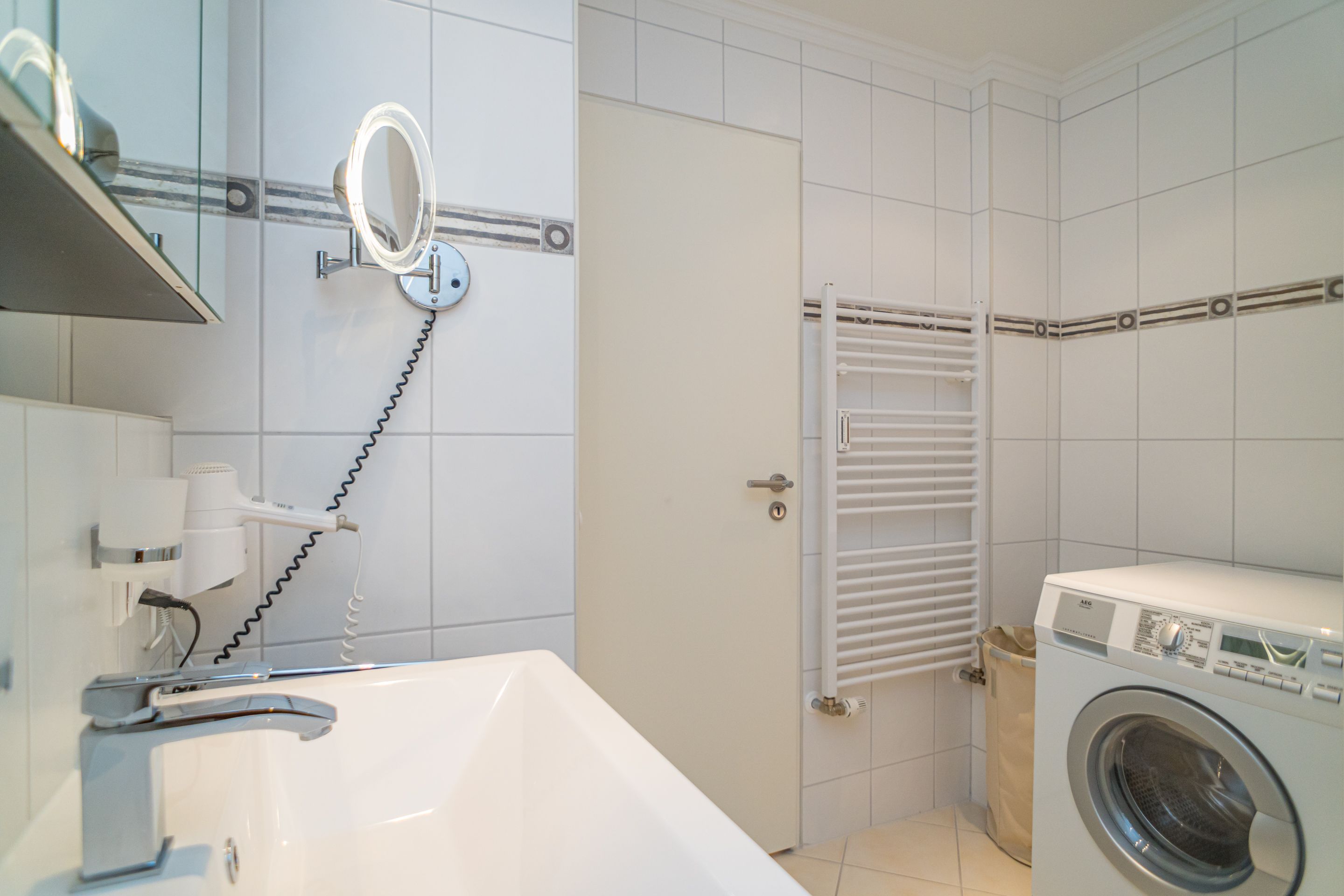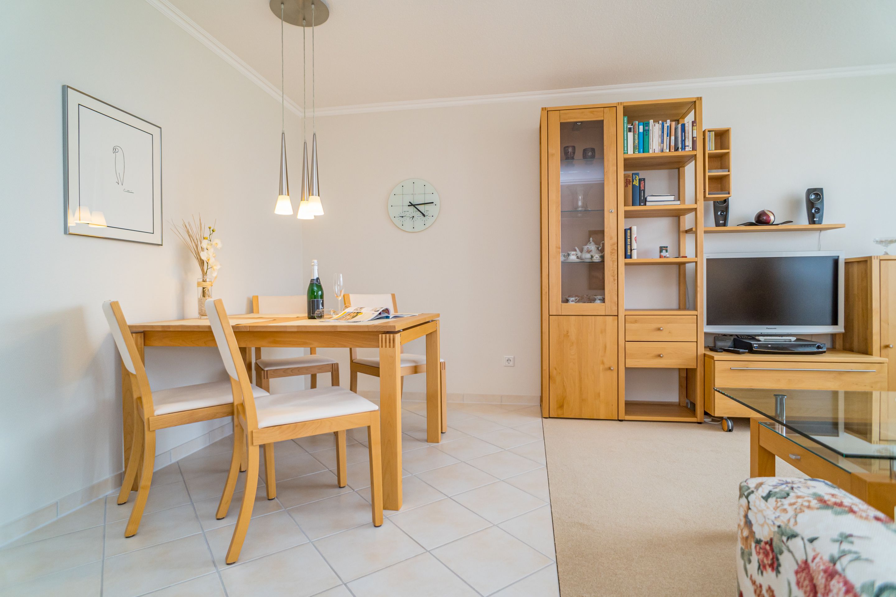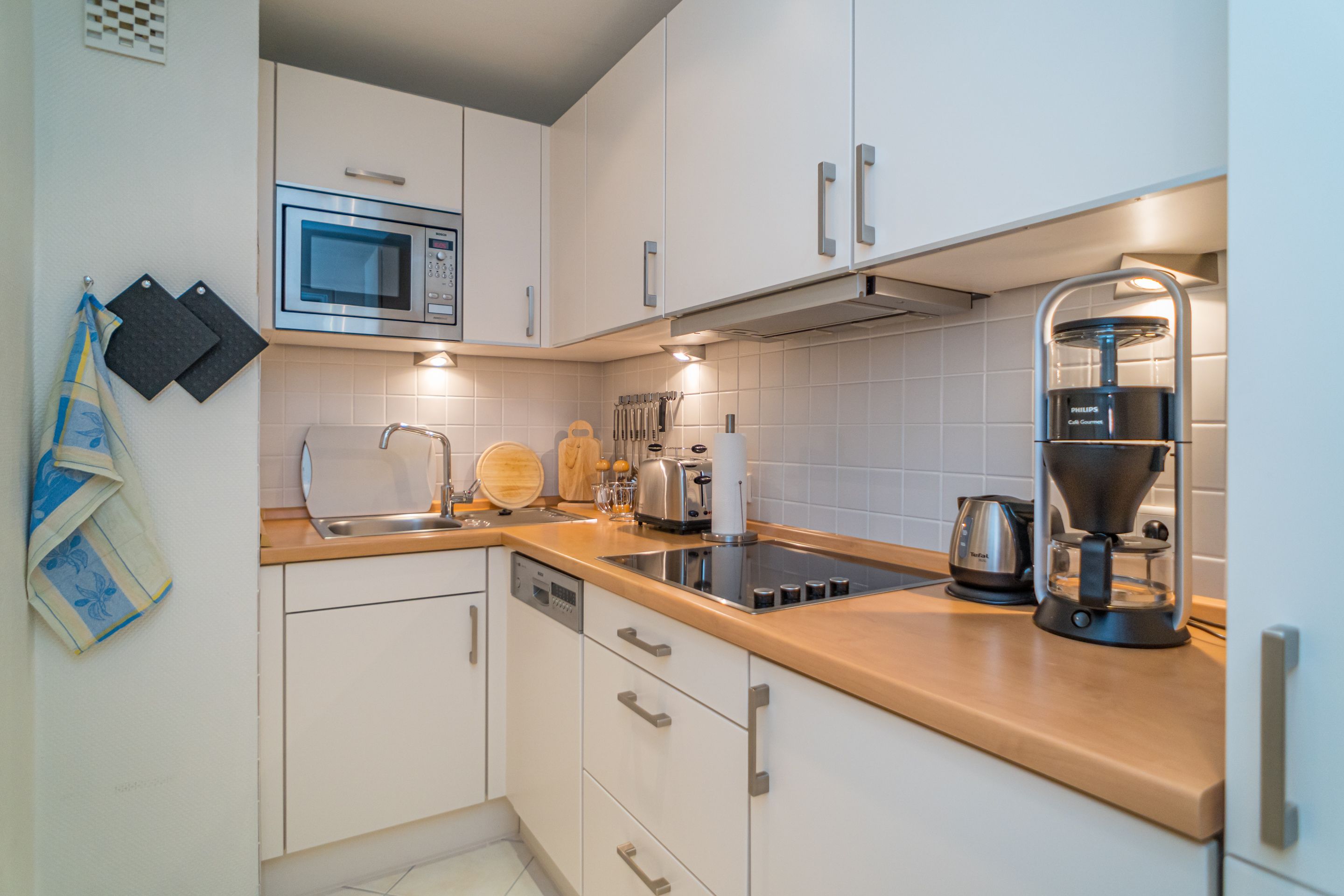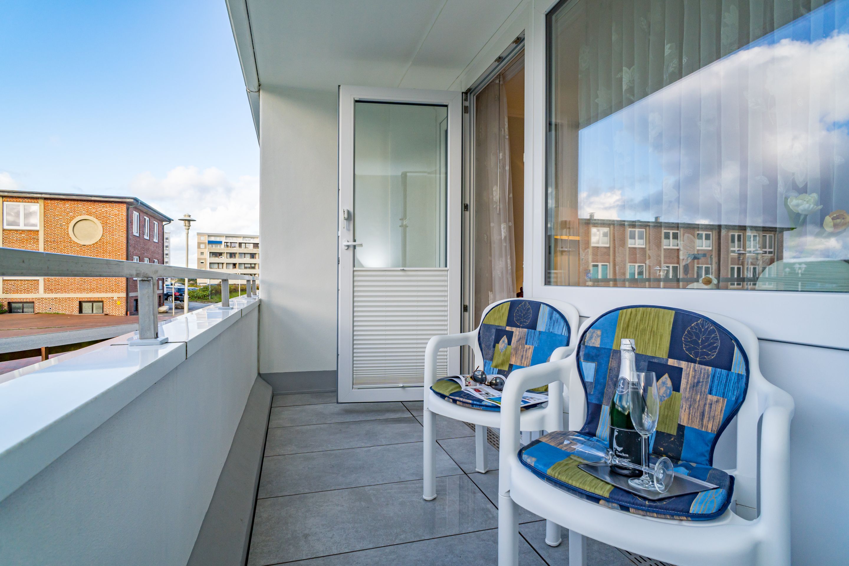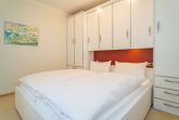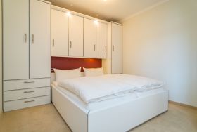 Die offene Schlafnische mit Doppelbett (Einzelmatratzen) bietet nicht nur eine erholsame Nachtruhe, sondern auch viel Stauraum für Ihre Urlaubsgarderobe. Der separate, großzügig geflieste Essplatz lädt zum Verweilen ein. Die voll ausgestattete Küche bietet alles, was Sie brauchen: 4-Platten-Cerankochfeld, Geschirrspüler, Mikrowelle mit Grillfunktion, Kaffeemaschine, Wasserkocher, Toaster und Eierkocher hier fehlt es an nichts. Das moderne Duschbad ist mit einem hochwertigen Waschtisch, einem beleuchteten Kosmetikspiegel und einem Waschtrockner ausgestattet. Auf der sonnigen Westloggia können Sie den Tag entspannt ausklingen lassen und die Sylter Luft genießen.