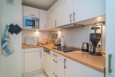 Die offene Schlafnische mit Doppelbett (Einzelmatratzen) bietet nicht nur eine erholsame Nachtruhe, sondern auch viel Stauraum für Ihre Urlaubsgarderobe. Der separate, großzügig geflieste Essplatz lädt zum Verweilen ein. Die voll ausgestattete Küche bietet alles, was Sie brauchen: 4-Platten-Cerankochfeld, Geschirrspüler, Mikrowelle mit Grillfunktion, Kaffeemaschine, Wasserkocher, Toaster und Eierkocher – hier fehlt es an nichts. Das moderne Duschbad ist mit einem hochwertigen Waschtisch, einem beleuchteten Kosmetikspiegel und einem Waschtrockner ausgestattet. Auf der sonnigen Westloggia können Sie den Tag entspannt ausklingen lassen und die Sylter Luft genießen.