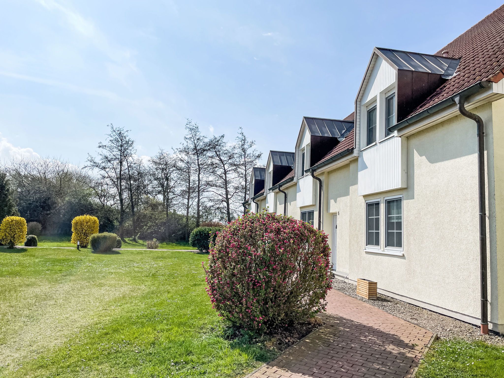 Gemütliche Feriensiedlung Gollwitzer Park (Insel Poel), umgeben von Bäumen, Wiesen und Feldern. Am Ortsrand, ruhige, sonnige Lage, 600 m vom Meer, 600 m vom Strand, in einer Sackgasse, im Grünen. Zur Mitbenutzung: Grundstück 12'000 m2 mit Rasen, Wiese, Liegewiese, Naturteich. Tischtennis, Boccia (extra), Kinderspielplatz. In der Anlage: Wireless LAN, Einstellraum für Fahrräder. Parkplatz auf dem Grundstück. Lebensmittelgeschäft 5 km, Supermarkt 5 km, Einkaufszentrum 5 km, Restaurant 200 m, Bäckerei 5 km, Bushaltestelle 100 m, Sandstrand 600 m, Freibad 18 km, Hallenbad 18 km, Badesee 18 km. Minigolf 6.5 km, Reitstall 7.5 km, Wanderwege ab Haus 100 m. Nahe gelegene Sehenswürdigkeiten: Hansestadt Wismar 10 km. Bitte beachten: Fahrzeug empfohlen. Der Gollwitzer Park besteht aus fünf zweigeschossigen Appartementhäusern mit insgesamt 45 Ferienwohnungen, auf dem Grundstück befindet sich zudem ein eingezäunter Naturteich. Das Rauchen ist auch auf den Balkonen nicht gestattet.