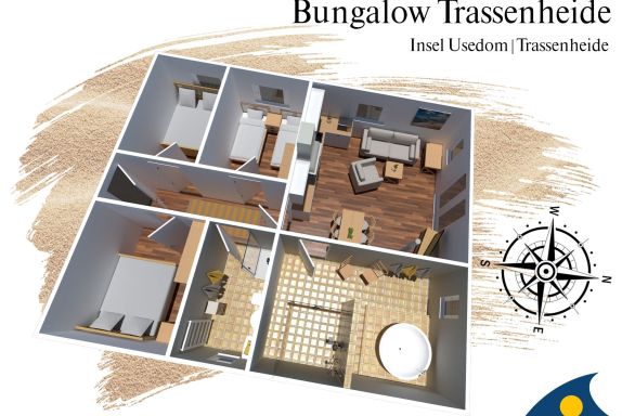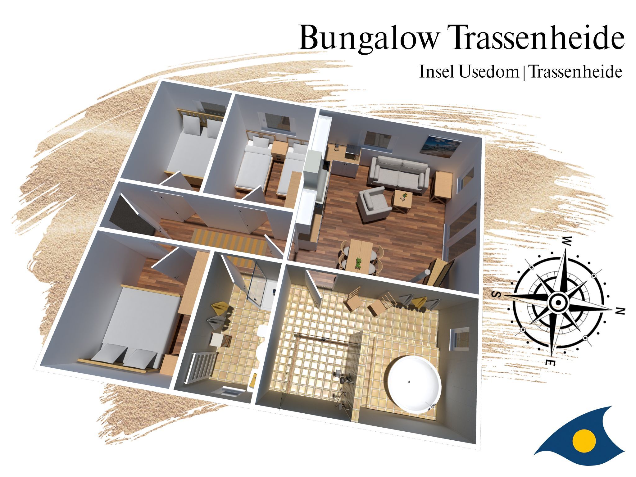 Dieser 90 qm Bungalow am Ortsrand von Trassenheide bietet Ihnen viele Annehmlichkeiten.