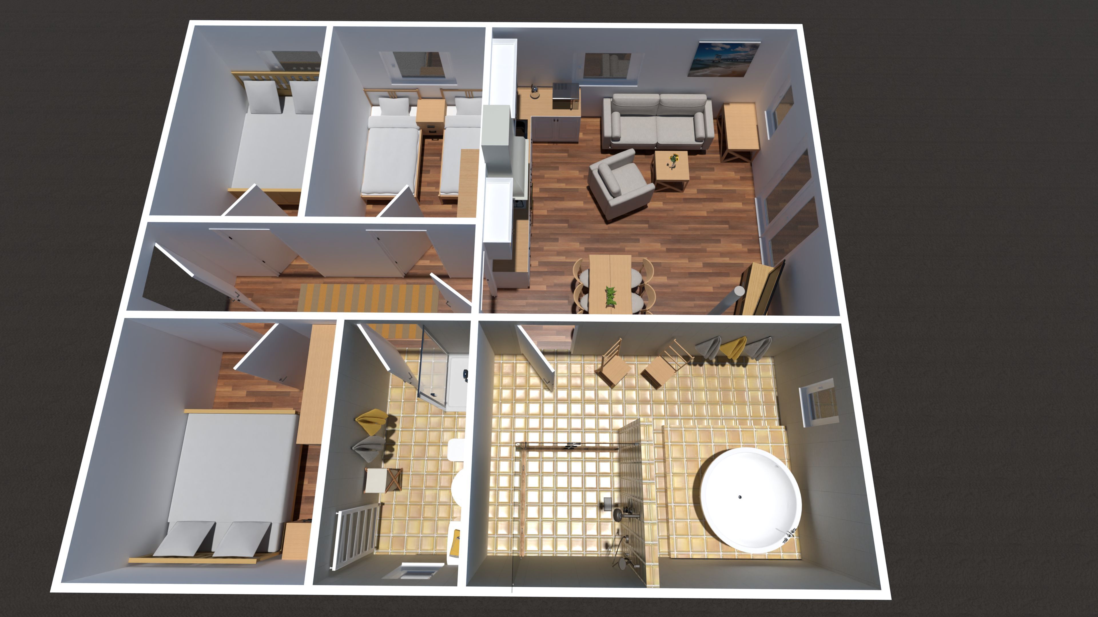 • ca. 90qm Bungalow mit offener Küche und Kamin
