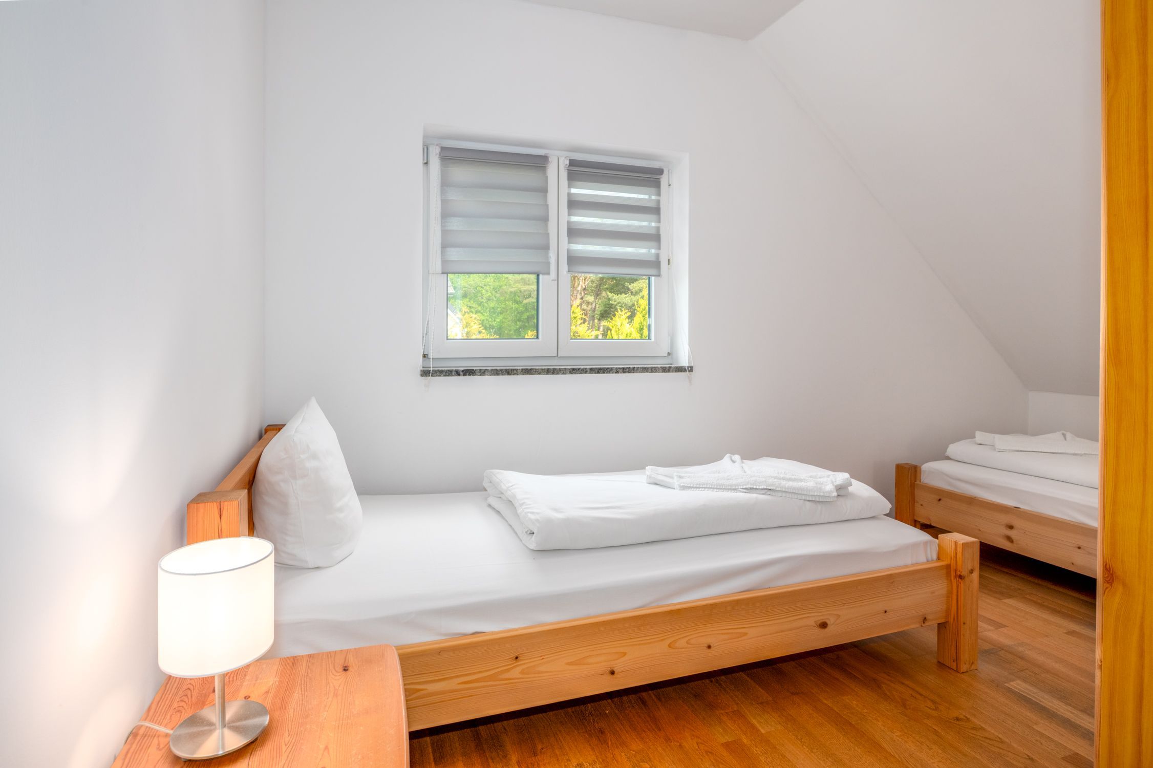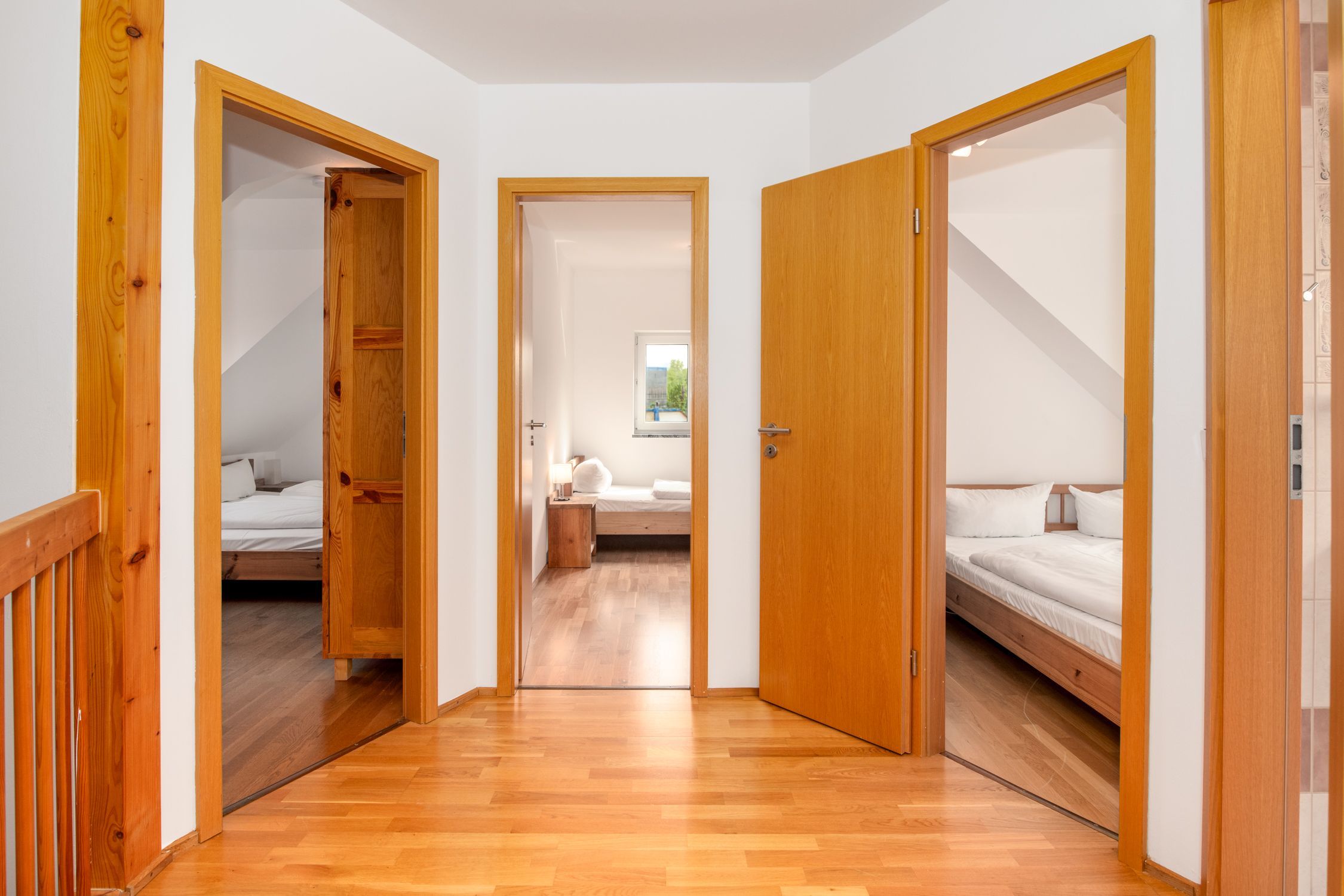 Es stehen Ihnen drei separate Schlafzimmer mit Echtholzmöbeln sowie ein zweites Badezimmer im ersten Stock zur Verfügung.