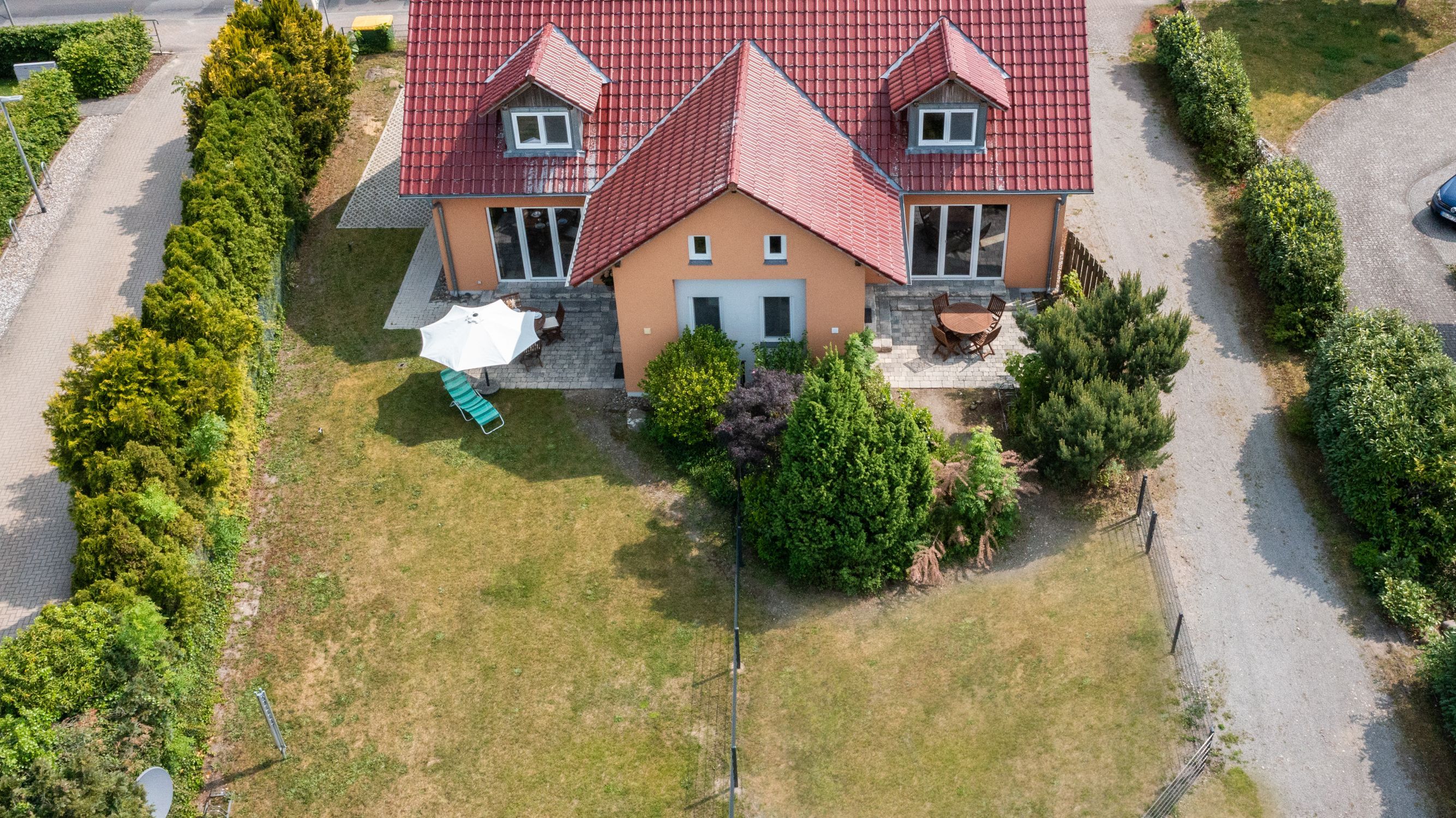 Am Ortsrand vom schönen Ostseebad Trassenheide befindet sich das großzügige Grundstück mit zwei Doppelhaushälften und einem Bungalow.