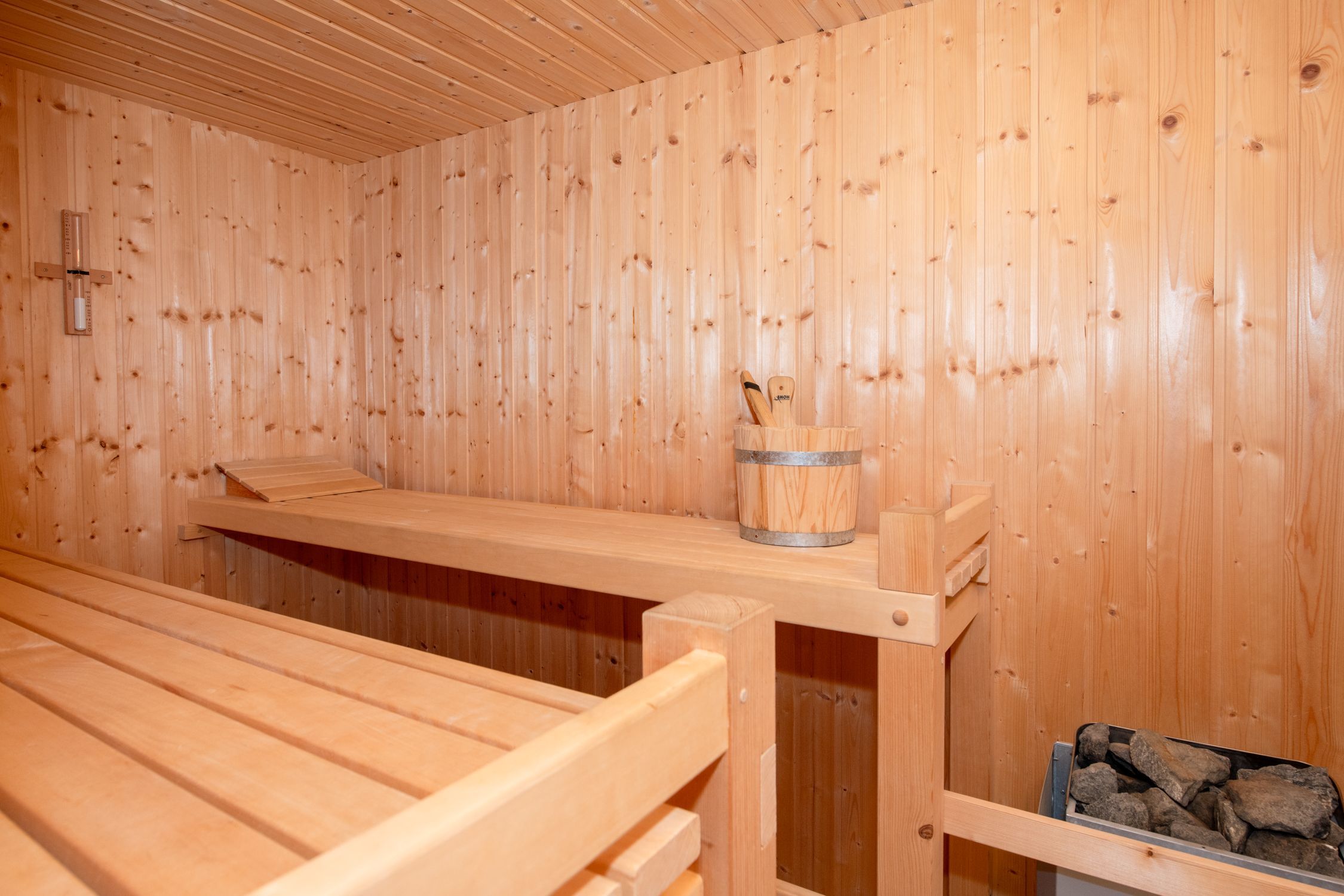 Die Sauna mit angrenzendem Badezimmer runden Ihren Entspannungsurlaub ab.