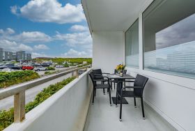 Komplett mit Fliesen ausgelegte 2-Zimmer-Ferienwohnung, ca. 66 qm im Hochparterre (1/2 Etage) zur Südseite mit Südloggia (mit Balkonmöblierung) für max. 4 Personen.