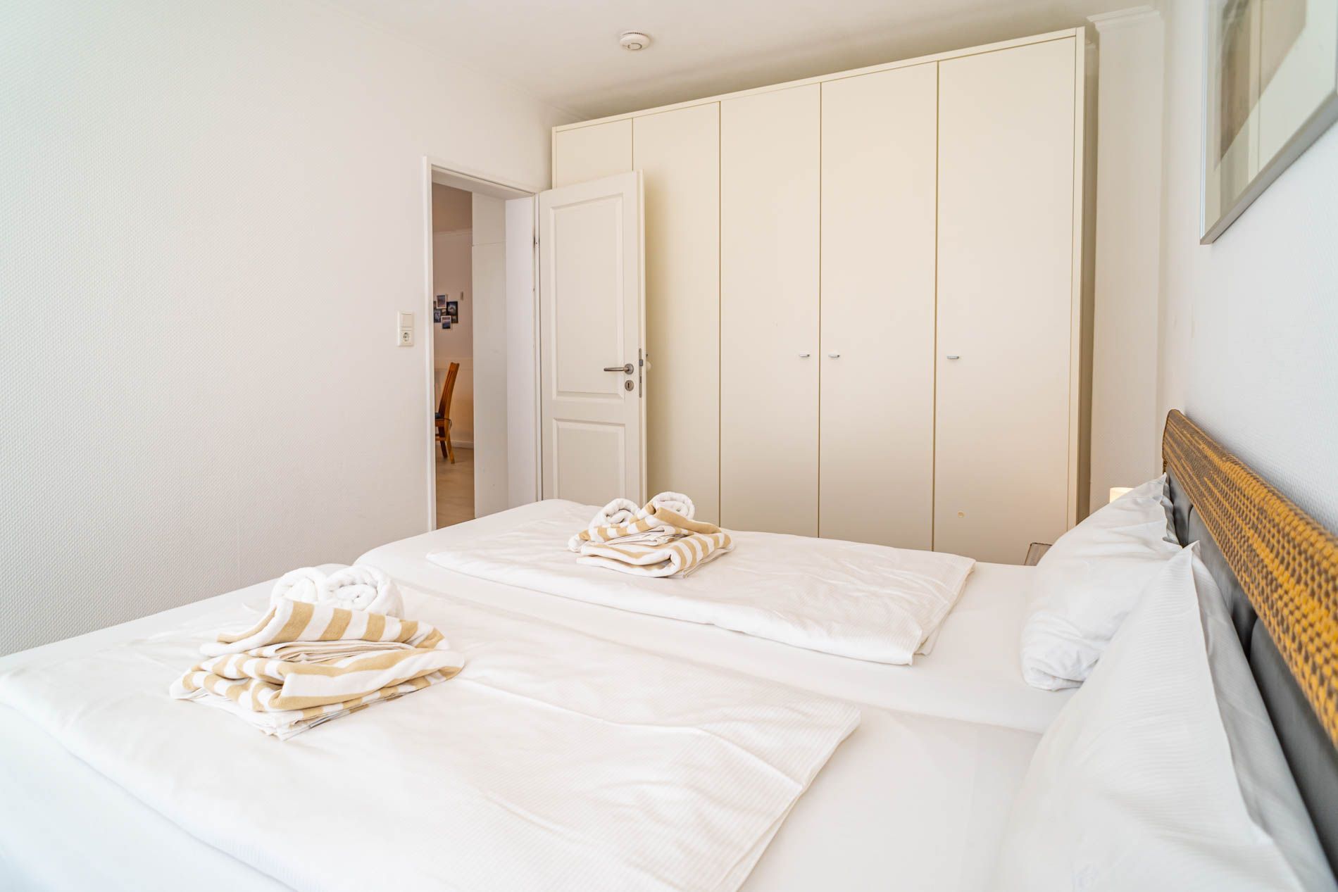 Das Schlafzimmer hat ein Doppelbett (2 m x 1,80 m) mit zwei Einzelmatratzen.