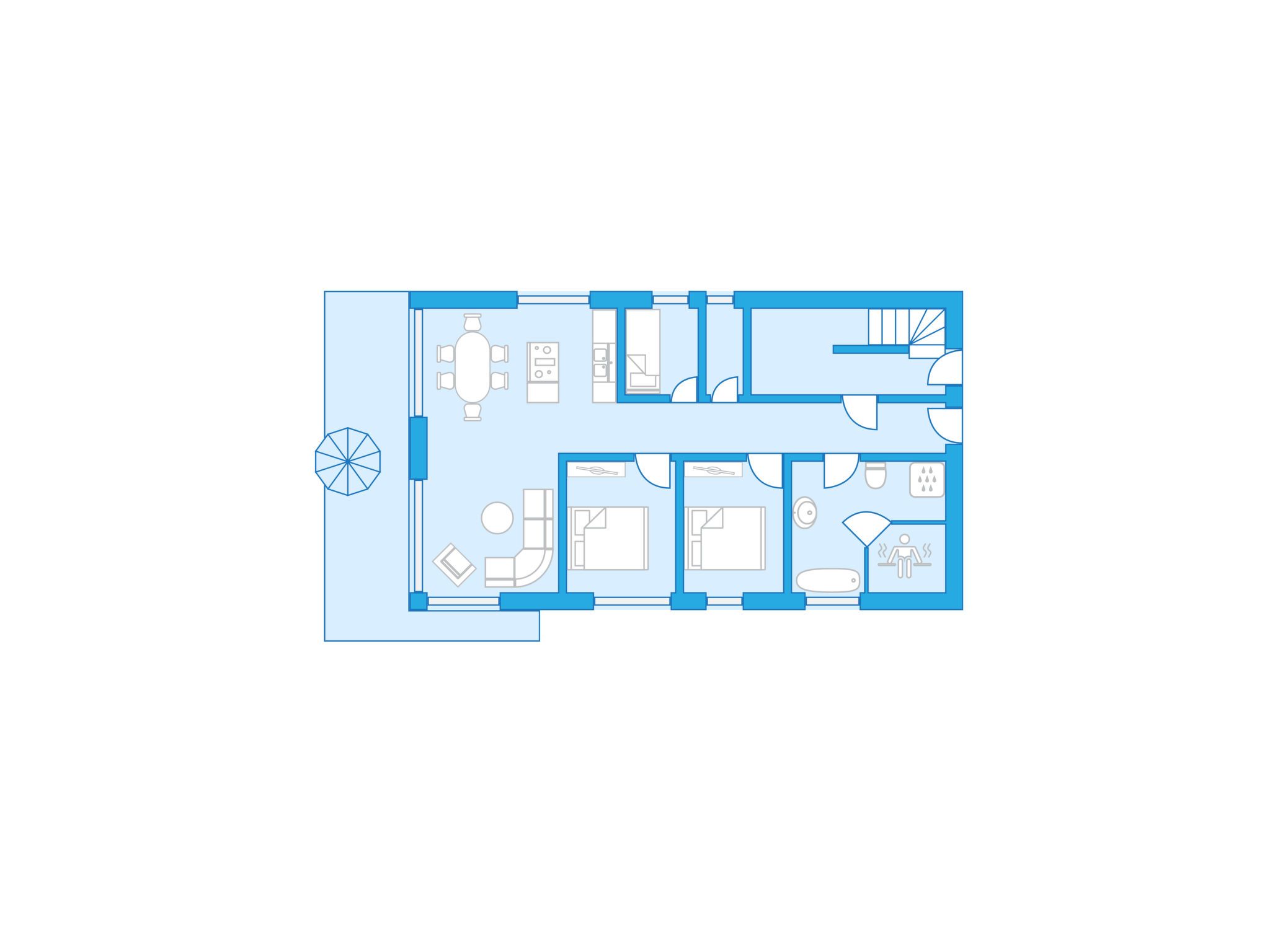 8-Zimmer-Haus 192 m2 auf 2 Stockwerken. Geräumig und hell, komfortabel und modern eingerichtet: grosses Wohn-/Esszimmer mit Sat-TV (Flachbildschirm). Ausgang zum Garten. 2 Zimmer, jedes Zimmer mit 1 Doppelbett (180 cm, Länge 200 cm), Sat-TV (Flachbildschirm). 1 Zimmer mit 1 x 2 Etagenbetten (90 cm, Länge 200 cm). Offene Küche (Backofen, Geschirrspüler, 4 Glaskeramikplatten, Toaster, Wasserkocher, Mikrowelle, elektrische Kaffeemaschine, Kochinsel). Sep. WC, Bad/Dusche/WC, Doppelwaschbecken, Sauna. G-Heizung. Obergeschoss: grosses Wohn-/Esszimmer mit Sat-TV (Flachbildschirm). Ausgang zum Balkon. 2 Zimmer, jedes Zimmer mit 1 Doppelbett (180 cm, Länge 200 cm), Sat-TV (Flachbildschirm). 1 Zimmer mit 1 Bett (90 cm, Länge 200 cm). Offene Küche (Backofen, Geschirrspüler, 4 Glaskeramikplatten, Toaster, Wasserkocher, Mikrowelle, elektrische Kaffeemaschine, Kochinsel). Sep. WC, Bad/Dusche/WC, Doppelwaschbecken, Sauna. Grosser Balkon 30 m2, grosse Terrasse 30 m2. Terrassenmöbel, Balkonmöbel. Zur Verfügung: Waschmaschine, Kinderhochstuhl, Babybett. Internet (Wireless LAN, gratis). Bitte beachten: Nichtraucher-Unterkunft. Buchungen sind nur zu touristischen Zwecken erlaubt.
