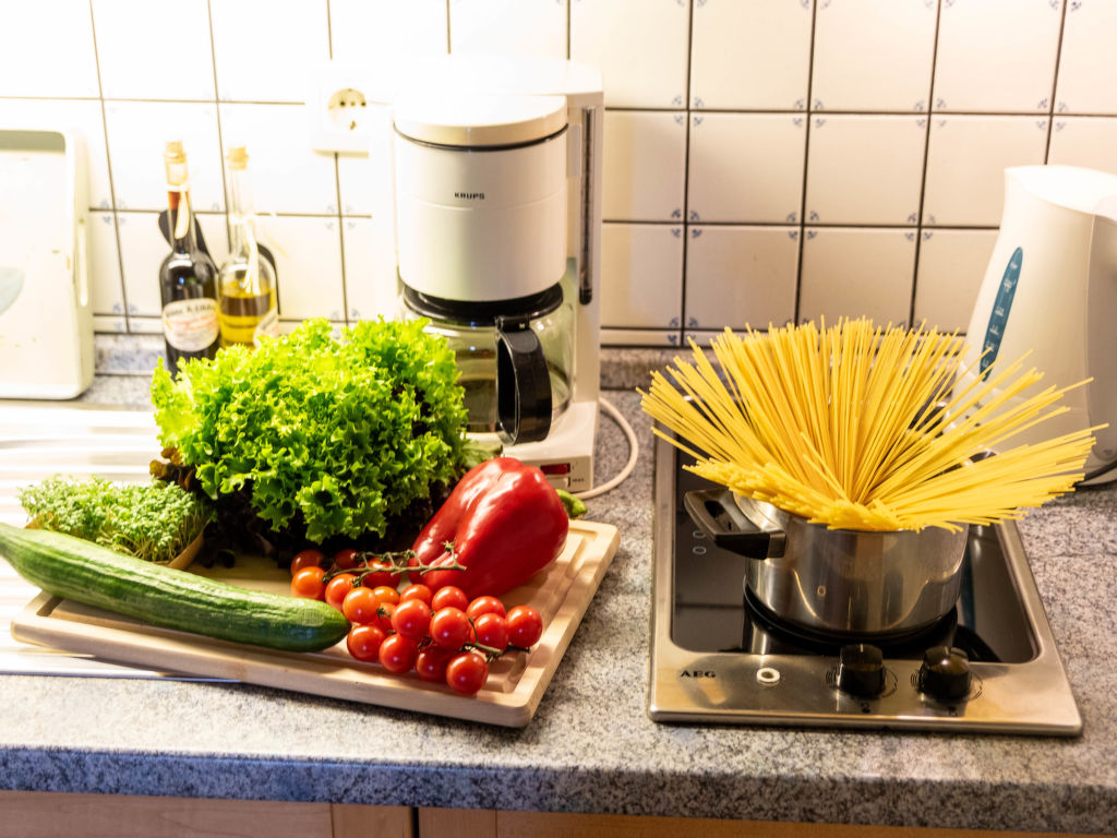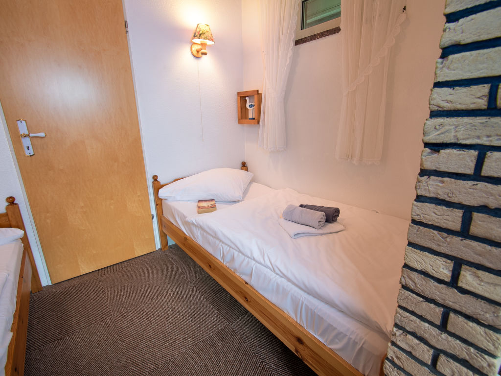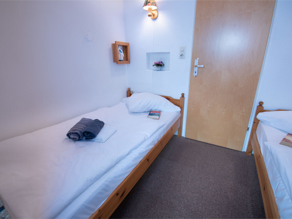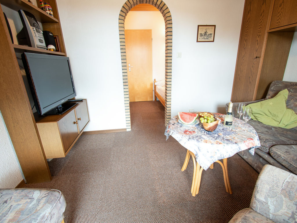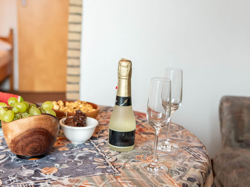 2-Zimmer-Wohnung 35 m2 im 1. Stock. Gemütlich eingerichtet: Wohnzimmer 9 m2 mit Digital-TV, Flachbildschirm und Stereoanlage. Durchgangszimmer 4 m2 mit 2 Betten (90 cm, Länge 180 cm). Kleine Küche 14 m2 (2 Kochplatten, Toaster, Wasserkocher, Mikrowelle, elektrische Kaffeemaschine) mit Esstisch. Dusche/WC. Balkon. Balkonmöbel. Zur Verfügung: Telefon (extra), Kinderhochstuhl (extra), Haartrockner. Bitte beachten: Kühlschrank ohne Gefrierfach, Nichtraucher-Unterkunft. Rauchmelder.