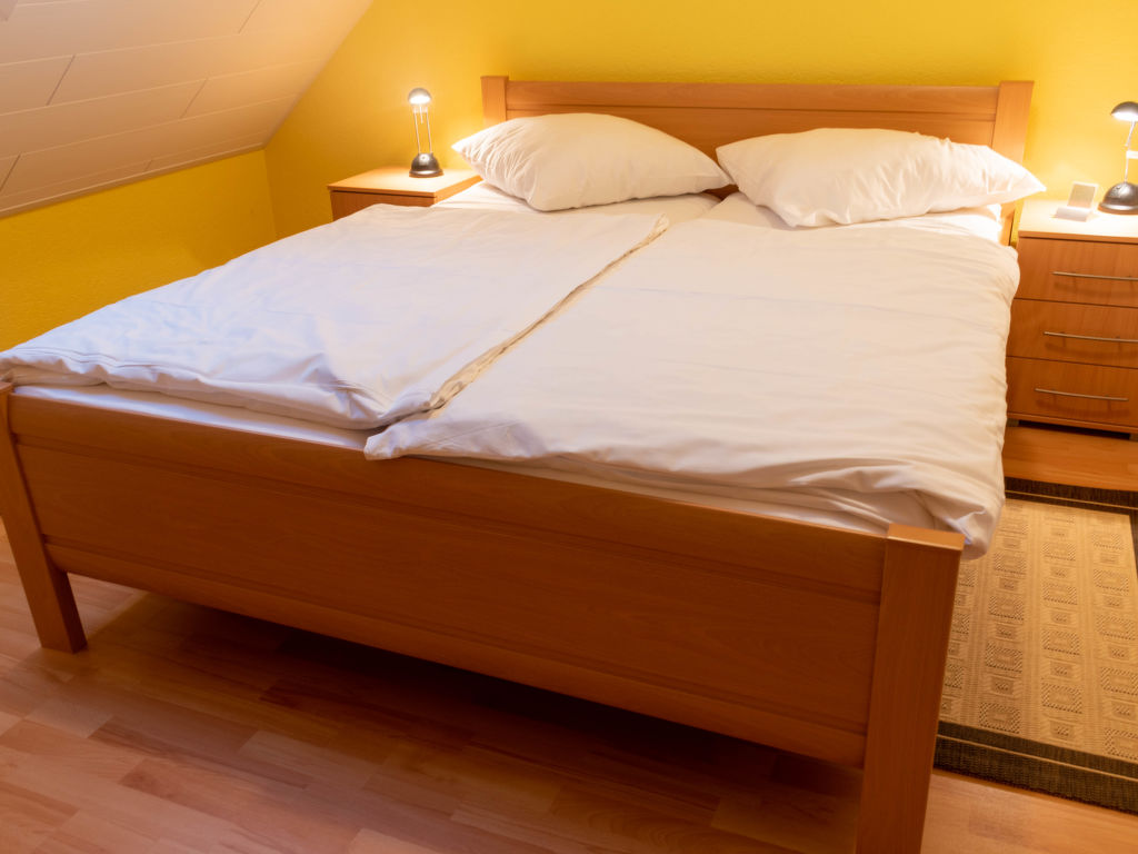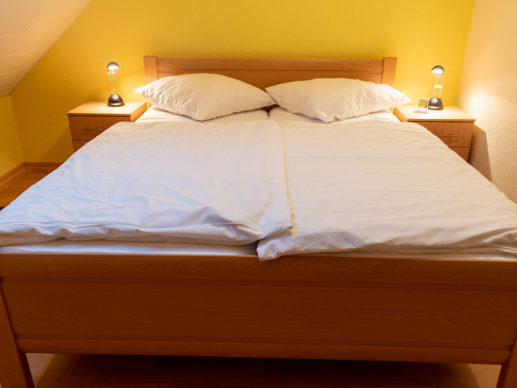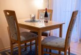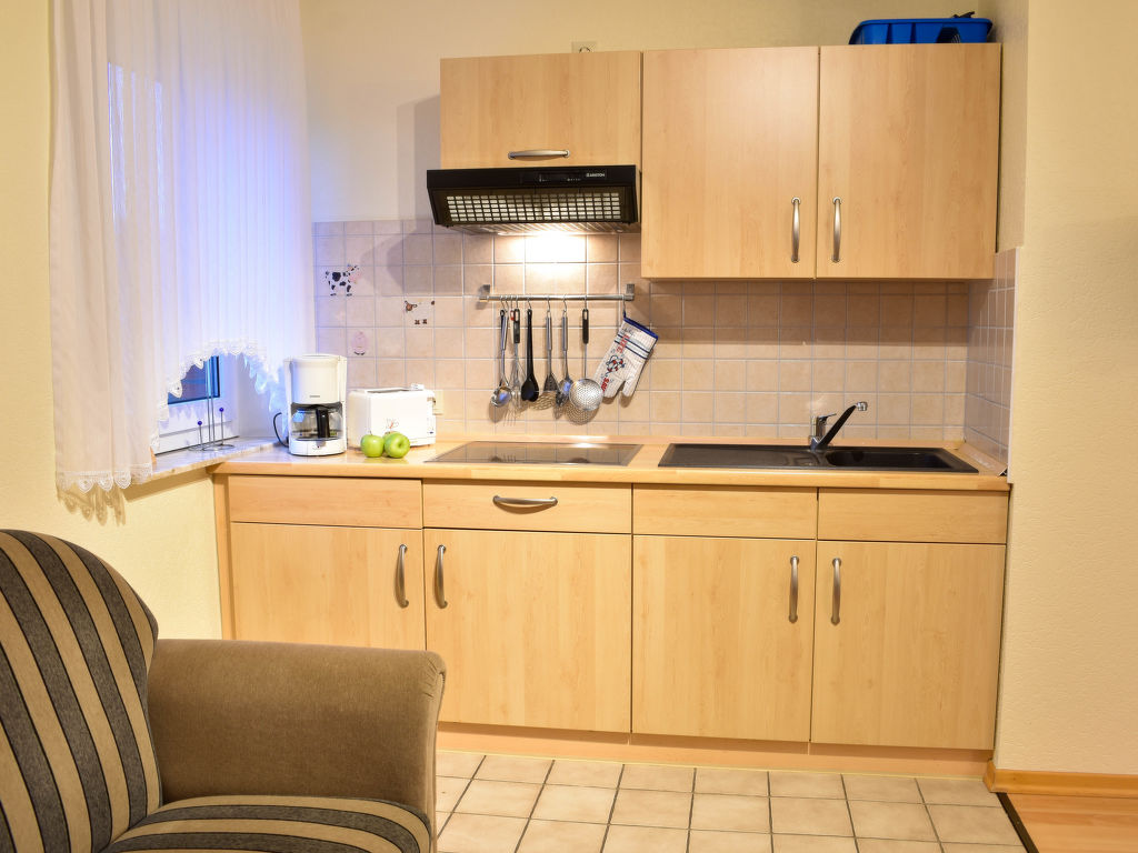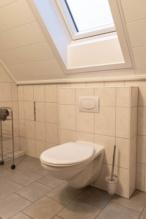 2-Zimmer-Wohnung 38 m2, im Obergeschoss. Abgeschrägtes Wohn-/Esszimmer 18 m2 mit Kabel-TV (Flachbildschirm), Radio. 1 abgeschrägtes Zimmer 6 m2 mit 1 Doppelbett (2 x 80 cm, Länge 200 cm). Kochnische (4 Kochplatten, Toaster, Wasserkocher, Mikrowelle, elektrische Kaffeemaschine). Dusche/WC. Kleiner Balkon. Balkonmöbel. Zur Verfügung: Kinderhochstuhl (extra). Internet (Wireless LAN, gratis). Bitte beachten: Kühlschrank ohne Gefrierfach, Nichtraucher-Unterkunft.