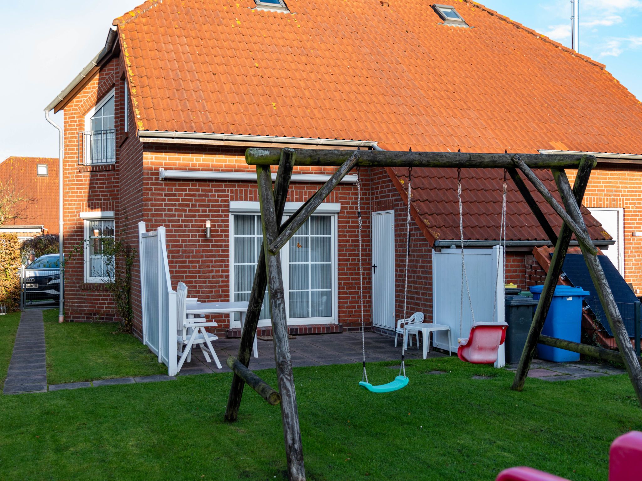 Schönes Doppelhaus Siegerland. Im Ort, ruhige Lage, 1.5 km vom Meer, 1.5 km vom Strand. Zur Alleinbenutzung: grosser Garten mit Rasen und Blumen. Im Hause: Zentralheizung. Parkplatz beim Haus. Supermarkt 900 m, Restaurant 1 km, Bäckerei 600 m, Café 1 km, Bushaltestelle 600 m, Bahnstation 2 km, Fähre 2 km, Sandstrand 1.5 km, Freibad 14 km, Hallenbad 900 m. Golfplatz (18 Loch) 8 km, Minigolf 900 m.