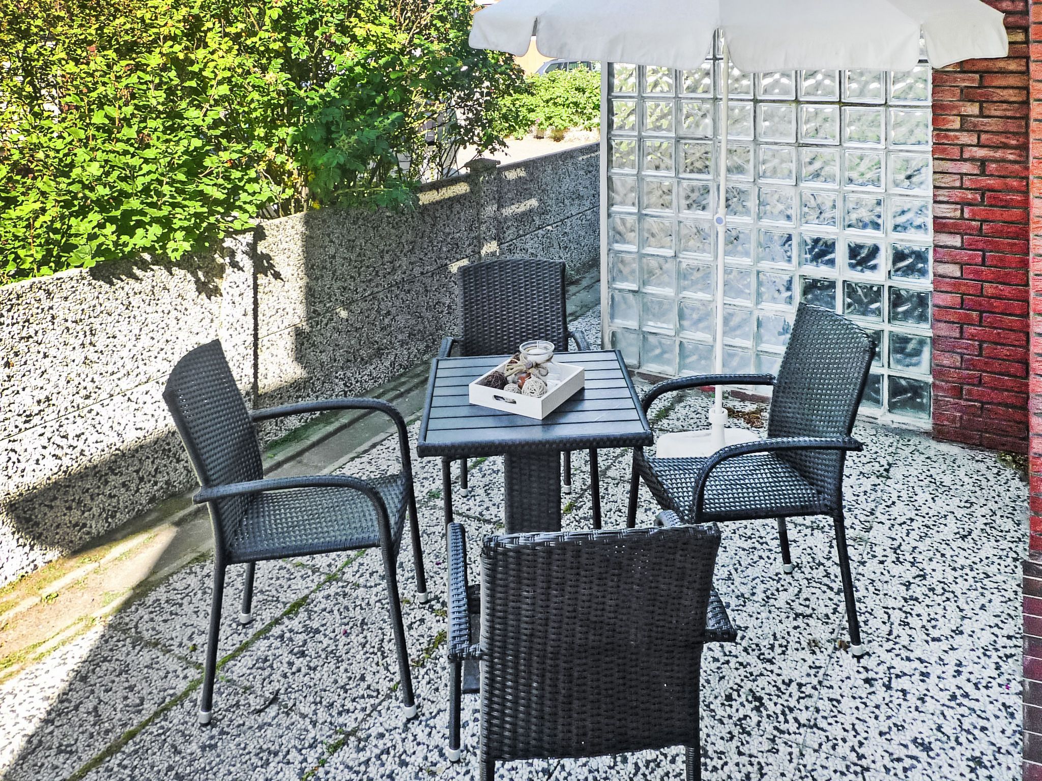 2-Zimmer-Wohnung 47 m2, im Erdgeschoss. Wohn-/Esszimmer 23 m2 mit 1 Doppeldiwanbett und Sat-TV (Flachbildschirm), Radio und elektrischem Rollladen. Ausgang zur Terrasse. 1 Zimmer 11 m2 mit 1 Doppelbett (2 x 90 cm, Länge 200 cm). Kochnische (Backofen, Geschirrspüler, 4 Glaskeramikplatten, Toaster, Wasserkocher, Mikrowelle, elektrische Kaffeemaschine). Dusche/WC. Terrasse 8 m2. Terrassenmöbel. Zur Verfügung: Kinderhochstuhl. Internet (Wireless LAN, gratis). Bitte beachten: Nichtraucher-Unterkunft. Rauchmelder. DE11361