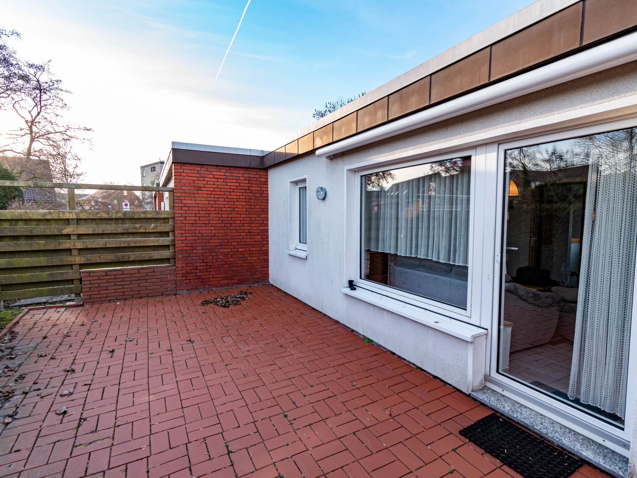 Reihenhaus Helga. Im Ort, zentrale Lage, vom Meer, 450 m vom Strand, in einer Sackgasse. Im Hause: Zentralheizung. Parkplatz in 10 m. Supermarkt 1.5 km, Restaurant 130 m, Bäckerei 100 m, Bushaltestelle 250 m, Bahnstation Norddeich 1.5 km, Fähre 1.5 km, Sandstrand, Freibad 14 km, Hallenbad 450 m. Golfplatz (18 Loch) 8 km, Minigolf 550 m.