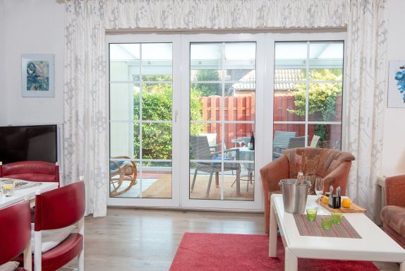 Seebär, 2-Zimmer-Wohnung 65 m2, im Erdgeschoss. Objekt geeignet für 2 Erwachsene + 2 Kinder. Hell, einfach eingerichtet: Wohn-/Esszimmer 20 m2 mit 1 Doppeldiwanbett (1 x 120 cm, Länge 180 cm), offenem Kamin, Esstisch und Sat-TV (Flachbildschirm), Radio und DVD. Ausgang zur Terrasse. 1 Zimmer 10 m2 mit 1 Doppelbett (2 x 80 cm, Länge 190 cm). Kochnische (4 Kochplatten, Backofen, Geschirrspüler, Toaster, Wasserkocher, elektrische Kaffeemaschine). Dusche/WC. Terrassenmöbel. Zur Verfügung: Kinderhochstuhl (extra), Holz (extra). Bitte beachten: Nichtraucher-Unterkunft. Maximal 1 Haustier/Hund erlaubt. Rauchmelder.