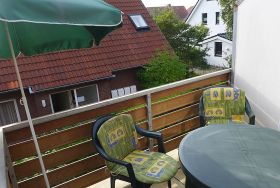 Leuchtfeuer, 2-Zimmer-Wohnung 40 m2, im Obergeschoss. Schön und gemütlich eingerichtet: Wohn-/Esszimmer 18 m2 mit Sat-TV (Flachbildschirm), Radio und CD. 1 abgeschrägtes Zimmer 11 m2 mit 1 franz. Bett (180 cm, Länge 200 cm). Kochnische (Backofen, 4 Glaskeramikplatten, Toaster, Wasserkocher, Mikrowelle, elektrische Kaffeemaschine). Dusche/WC. Balkon 5 m2. Balkonmöbel. Zur Verfügung: Kinderhochstuhl (extra). Internet (WLAN, gratis). Bitte beachten: Nichtraucher-Unterkunft. Rauchmelder.