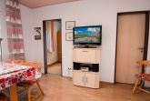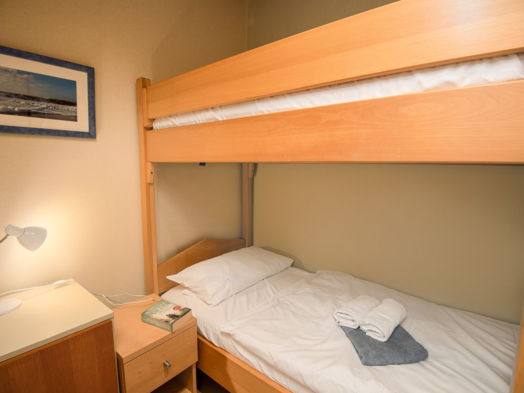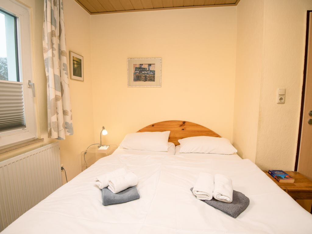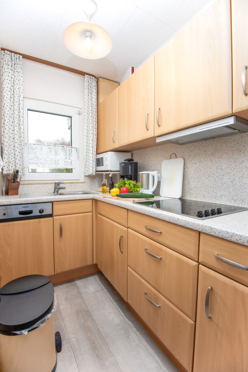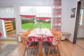 Wind, 3-Zimmer-Reihenhaus 48 m2, im Erdgeschoss. Geräumig, gemütlich eingerichtet: Wohn-/Esszimmer 19 m2 mit Sat-TV (Flachbildschirm), Stereoanlage. 1 Zimmer 9 m2 mit 1 Doppelbett (2 x 80 cm, Länge 200 cm). 1 Zimmer 4 m2 mit 1 x 2 Etagenbetten (80 cm, Länge 200 cm). Küche (Geschirrspüler, 4 Glaskeramikplatten, Toaster, Wasserkocher, Mikrowelle, elektrische Kaffeemaschine). Dusche/WC. Terrasse 20 m2. Terrassenmöbel. Zur Verfügung: Kinderhochstuhl (extra). Internet (Wireless LAN, gratis). Bitte beachten: Nichtraucher-Haus. Rauchmelder.