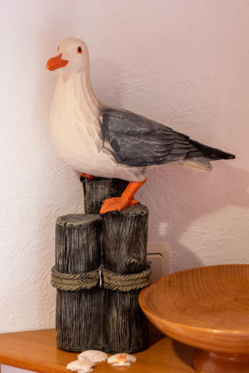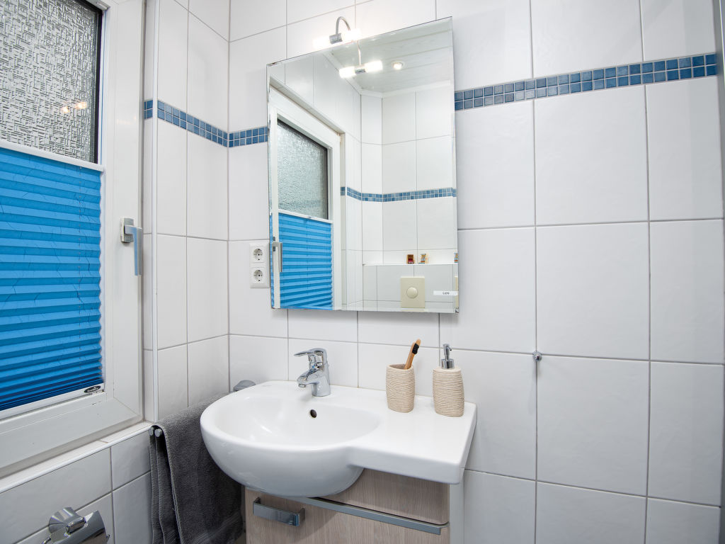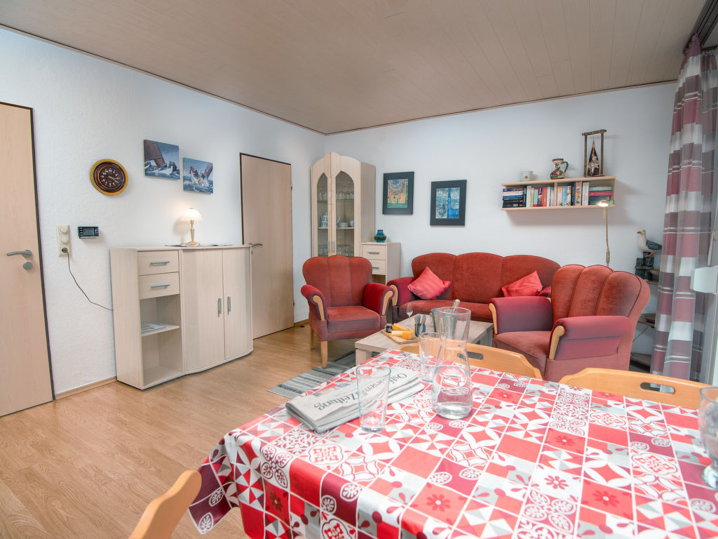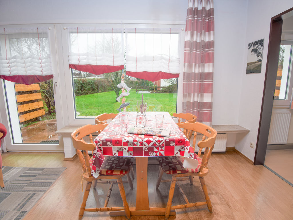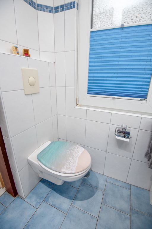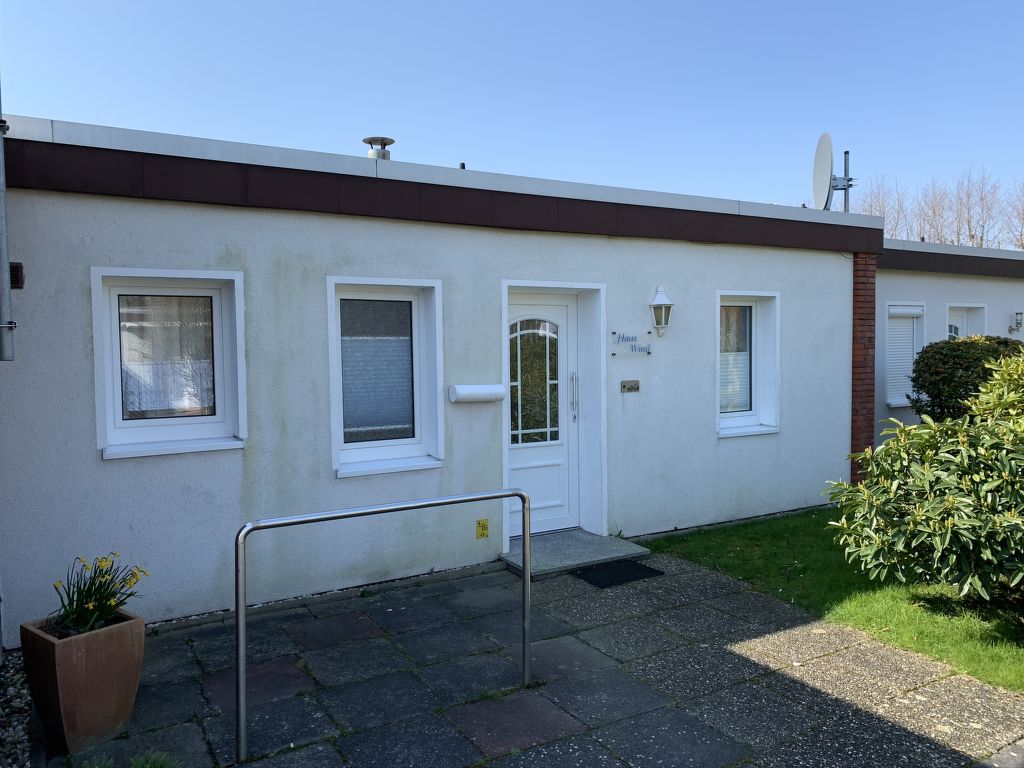Reihenhaus. Im Ort, zentrale Lage, 450 m vom Meer, 450 m vom Strand, in einer Sackgasse. Zur Mitbenutzung: Garten mit Rasen. Im Hause: Einstellraum für Fahrräder, Zentralheizung. Parkplatz beim Haus. Supermarkt 2.9 km, Restaurant 130 m, Bäckerei 100 m, Café 100 m, Bushaltestelle 250 m, Bahnstation Norddeich 1.5 km, Fähre 1.5 km, Sandstrand 500 m, Freibad 14 km, Hallenbad 450 m. Golfplatz (18 Loch) 8 km, Surfschule 550 m, Tennis 2 km, Minigolf 450 m.