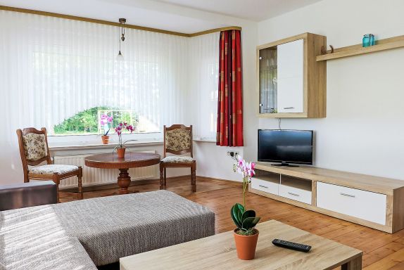 3-Zimmer-Wohnung 100 m2, im Erdgeschoss. Wohn-/Schlafzimmer 23 m2 mit Sat-TV (Flachbildschirm). 1 Zimmer 19 m2 mit 1 Doppelbett (2 x 90 cm, Länge 200 cm). 1 Zimmer 14 m2 mit 2 Betten (90 cm, Länge 200 cm). Küche (4 Kochplatten, Backofen, Geschirrspüler, Toaster, Wasserkocher, elektrische Kaffeemaschine) mit Esstisch. Dusche/WC, sep. WC. Terrasse. Terrassenmöbel, Gartengrill. Schöne Sicht auf die Landschaft. Zur Verfügung: Waschmaschine, Kinderhochstuhl (extra). Internet (WLAN, gratis). Bitte beachten: Nichtraucher-Unterkunft. Maximal 1 Haustier/Hund erlaubt. Rauchmelder.
