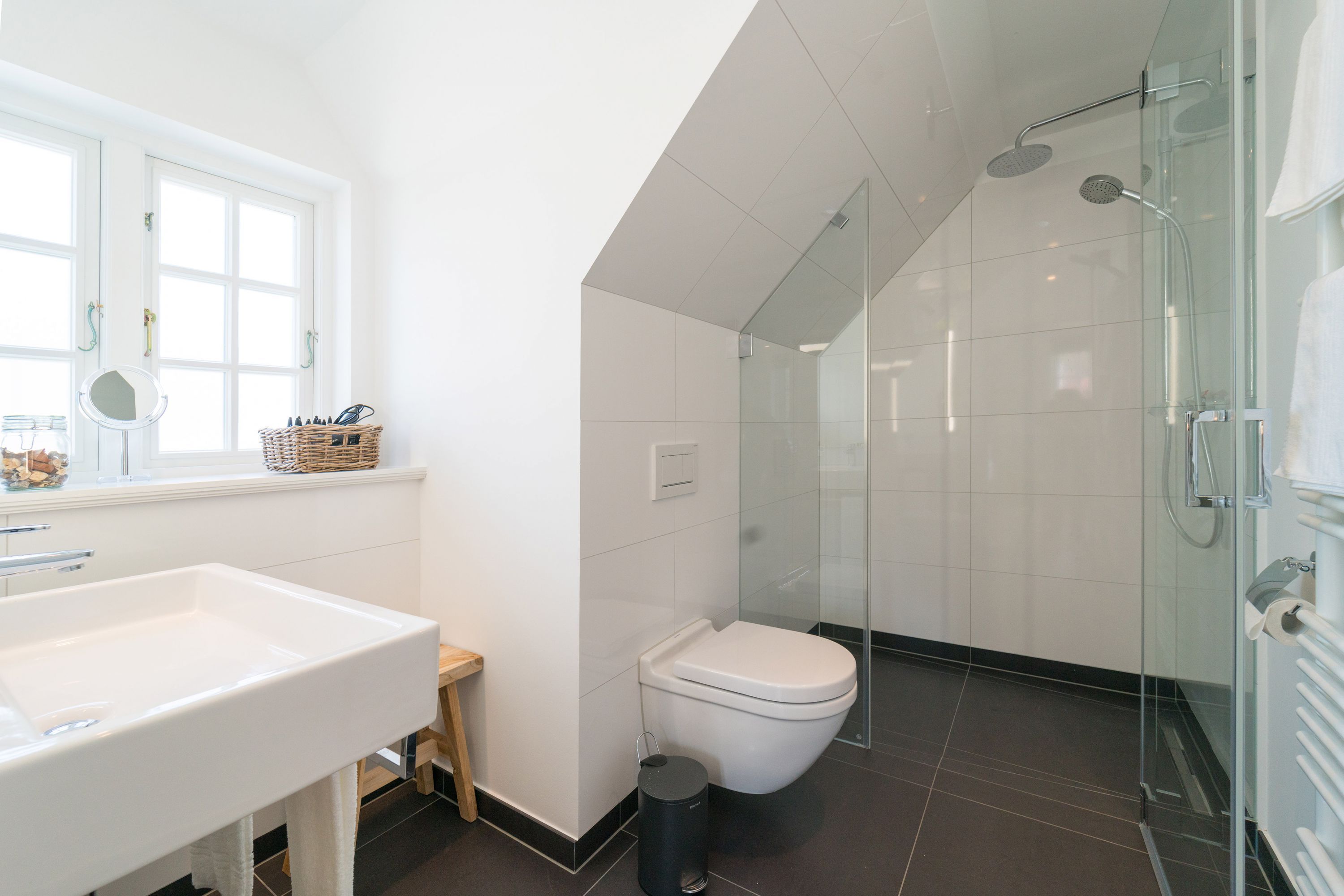Ferienhaus Leichte Brise Meer, Sonne und immer eine leichte Brise - das ist Föhr und das ist die ruhig und zentral gelegene Leichte Brise“ in Wyk. Moderne, klare Linien, nordische Leichtigkeit, massive Eichendielen und Designklassiker auf 105 qm über 3 Etagen als perfekte Urlaubsbasis für 4 Erwachsene und 1 Kleinkind (bis 3J.). Große Fensterflächen, Artemide und Gubi Leuchten schaffen lichtdurchflutete Räume. Im Erdgeschoss treffen USM Haller und Panton Stühle auf einen alten Eichentisch und eine Küche mit kompletter Ausstattung. Zwei gemütliche Sofas und ein moderner Ohrensessel sind die Relaxgrundlage für Fernsehabende, Lesestunden oder ein gutes Glas Wein am knisternden Kamin. Die Schlafzimmer jeweils mit Bettwäsche in Komfortgröße (155x220) und En-suite Bäder mit großer Dusche, versprechen Erholung im Schlaf. Und falls es im Urlaub doch mal eine E-Mail zu schreiben gibt, finden Sie einen kleinen Arbeitsplatz im Dachgeschoß. Die nach Süden ausgerichtete Terrasse mit großem Tisch und Standkorb schließt die Hausführung ab.