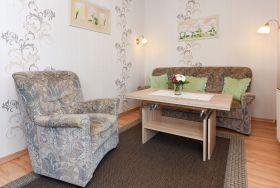 Die Ferienwohnung 1 befindet sich im Erdgeschoss und einer sonnigen Terrasse, Bad mit Dusche und WC (räumlich getrennt), eine moderne Kochniesche, ein Wohn-/Ess-Zimmer, 1 Schlafzimmer mit Kinderbett (auf Anfrage) und einem separatem Eingang ausgestattet. Ein Bollerwagen steht für Ihre Ausflüge kostenfrei zur Verfügung.