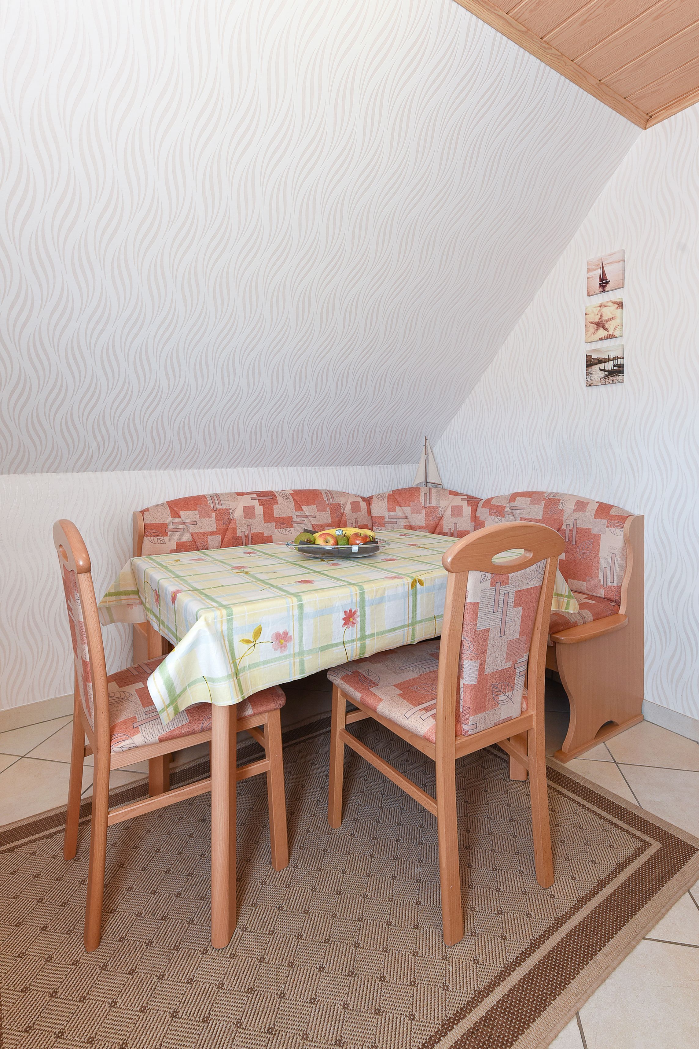 Die Ferienwohnung 2 befindet sich im Obergeschoss und verfügt über einen separaten Eingang, ein großes Bad mit Dusche und WC, eine moderne Küche mit Ess- & Sitz-möglichkeit, ein geräumiges Wohnzimmer, 2 Schlafzimmer, eins mit Kinderbett und Zugang zum sonnigen Balkon. Ein Bollerwagen steht für Ihre Ausflüge kostenfrei zur Verfügung.
