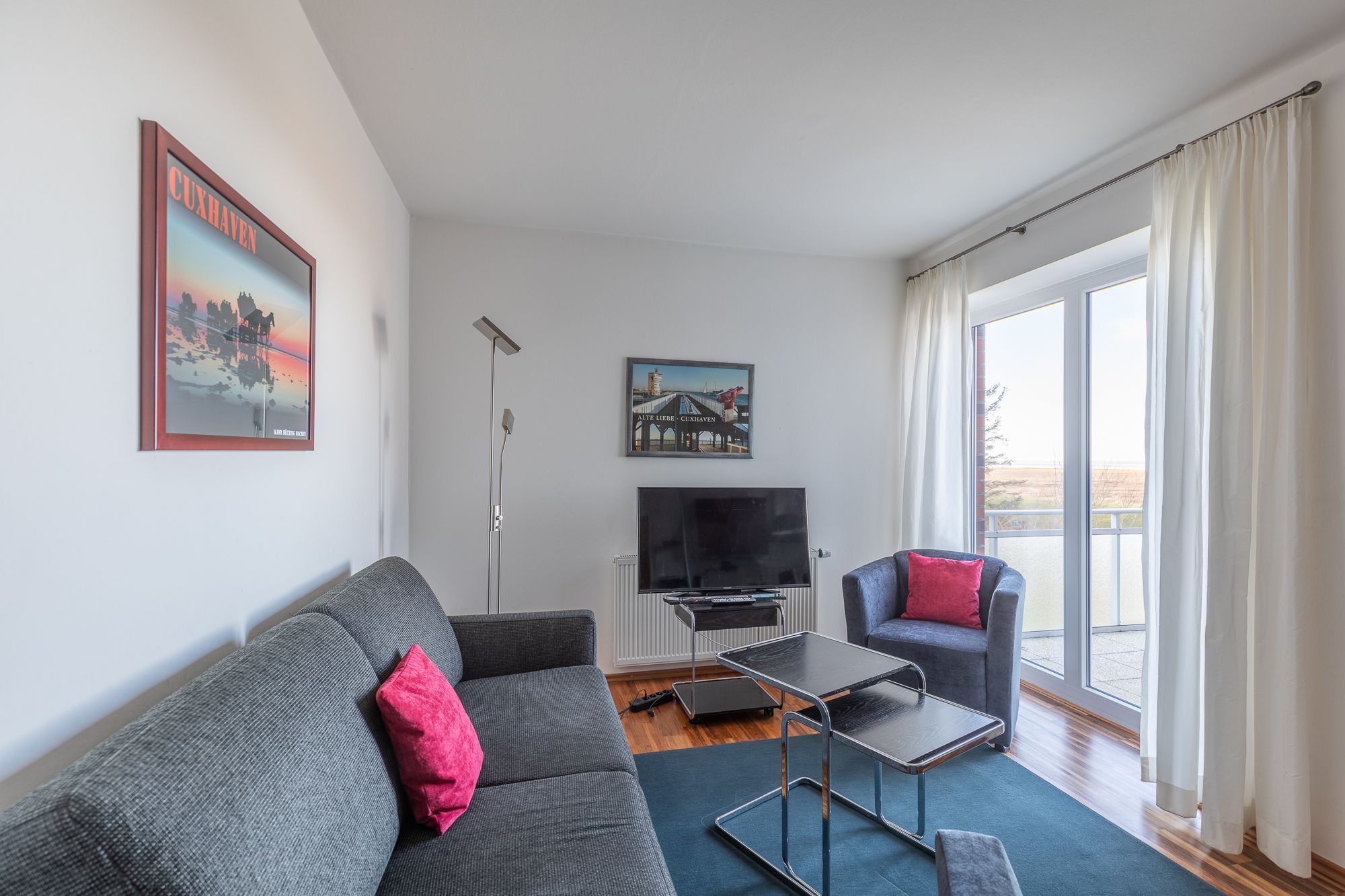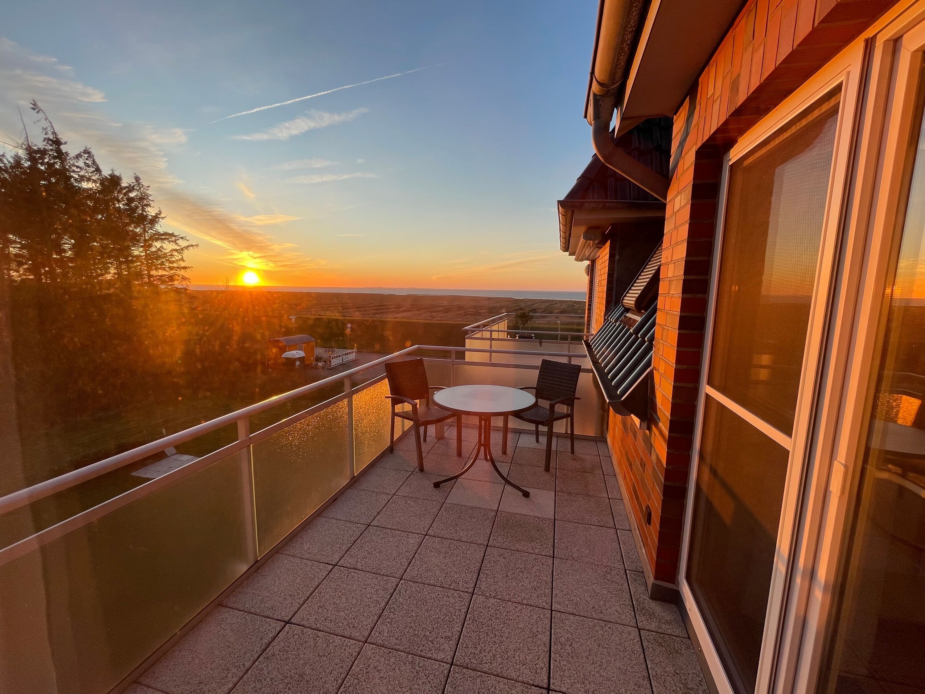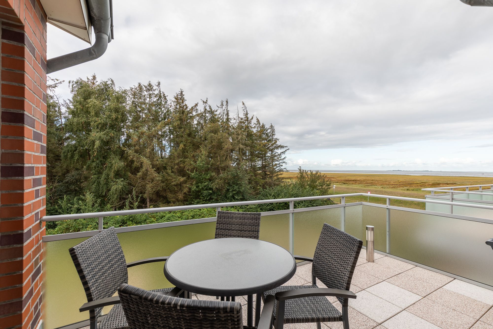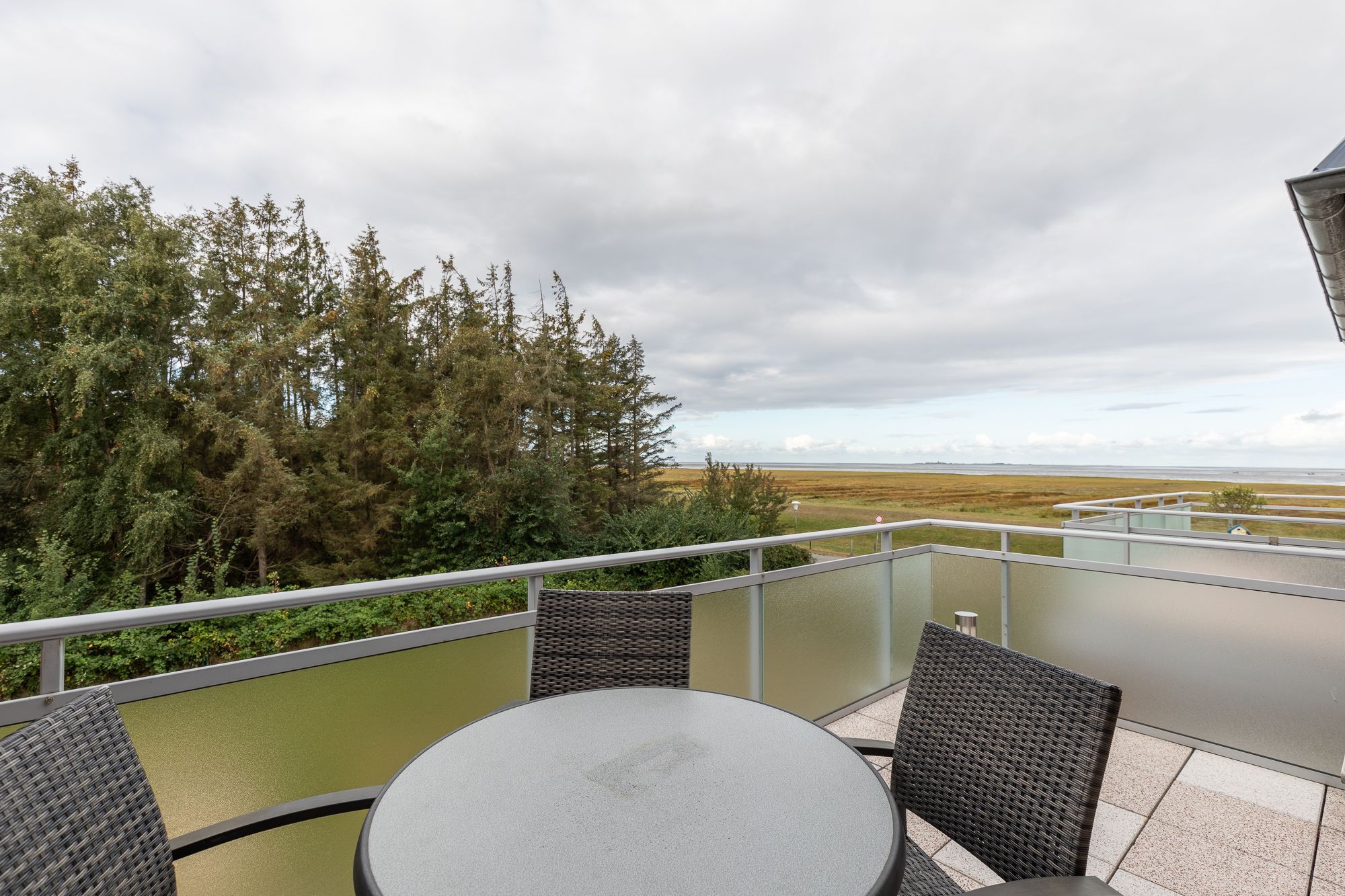 Schöne 3 Raum Wohnung mit einer Größe von ca. 70 m² Wohnfläche im 2. OG (Fahrstuhl im Haus), ist komplett für bis zu 4 Personen ausgestattet. 2 Schlafzimmer jeweils mit Doppelbett (ein Schlafzimmer verfüg über ein TV), großzügiges Wohnzimmer mit Einbauküche (Geschirrspüler, Ceranfeld, Backofen, Mikrowelle, Kühlschrank, Wasserkocher, Toaster und Kaffeemaschine) und Zugang zum Balkon (west), Essplatz, gemütliches Sofa, 2 Sessel und Flatscreen TV, innenliegendes Bad mit Dusche, WC, Fön und Handtuchheizkörper, im Dachgeschoss Tageslichtbad mit Dusche, WC und Handtuchheizkörper. Die Wohnung verfügt über eine Treppe in das Obergeschoss. Vom Balkon (mit Balkonmöbeln ausgestattet) aus haben Sie direkten Blick auf die Nordsee und das Wattenmeer.